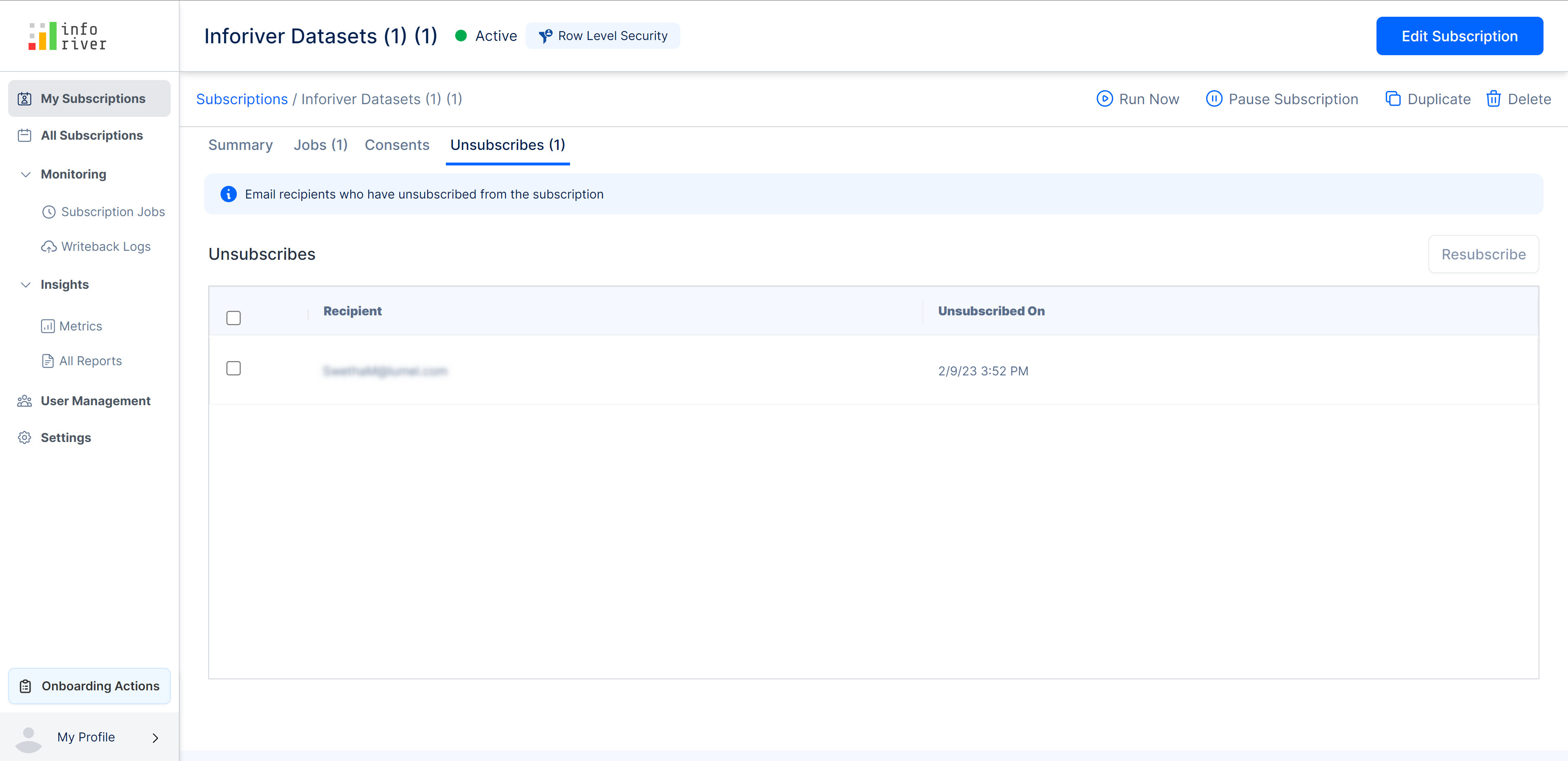 This page contains a list of all the members who unsubscribed from the subscription along with the date of unsubscription.
