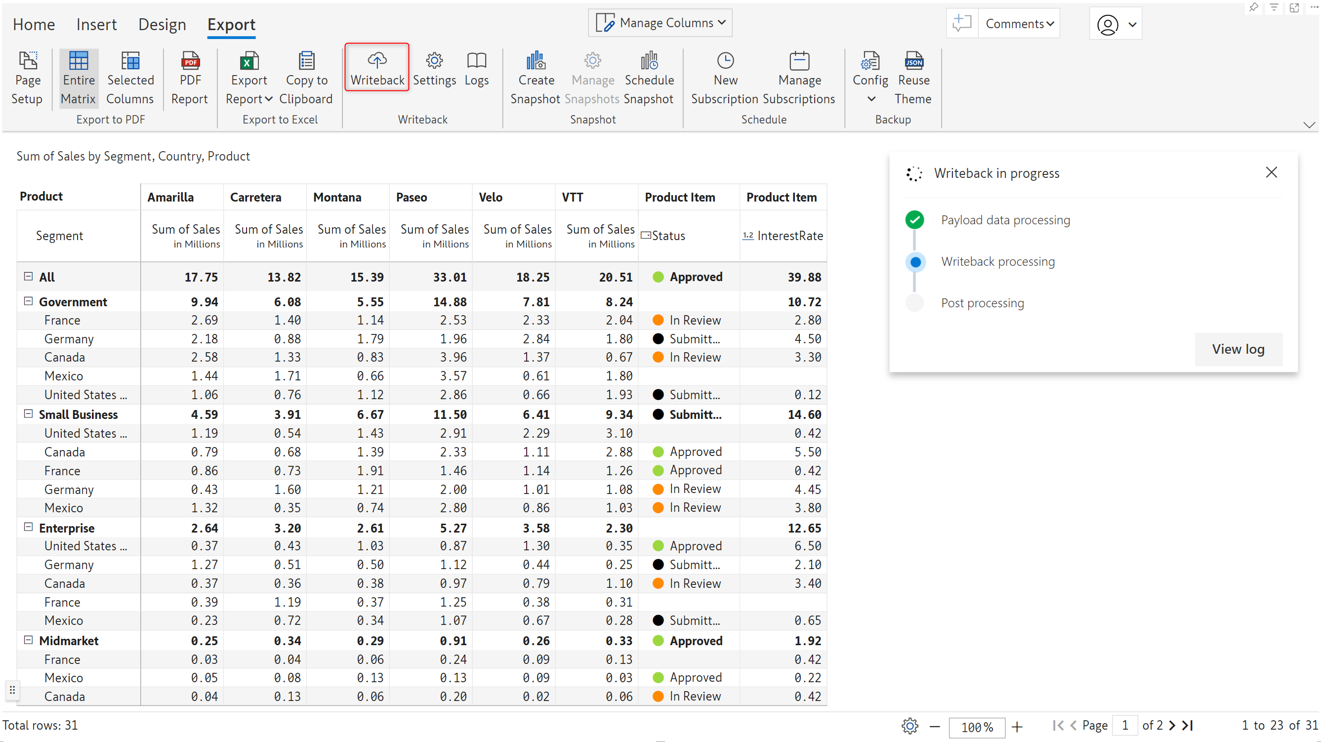 **Writeback** - Export report data to a destination.&#x20;