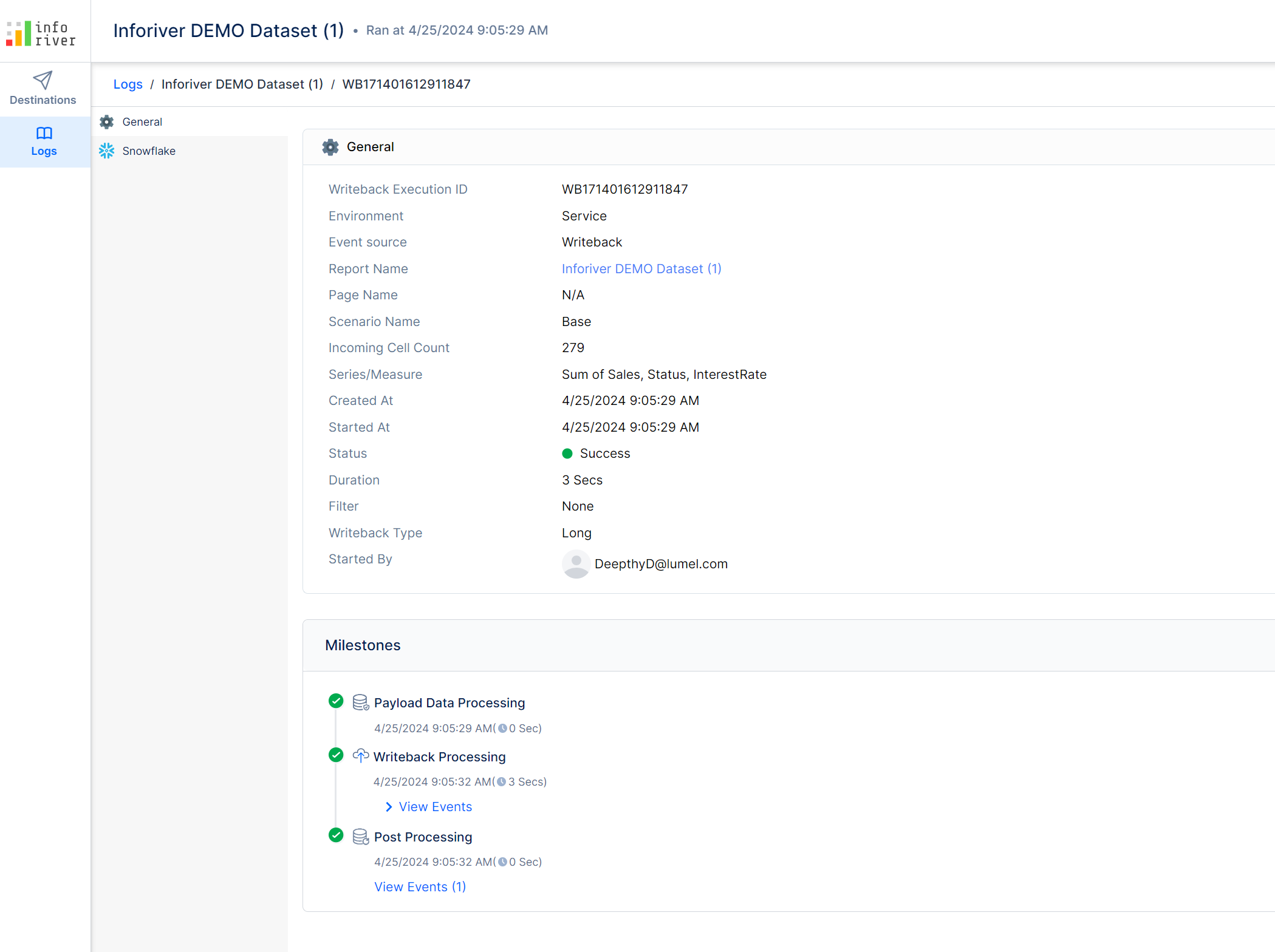 **STEP 7:** Click the logs button to navigate to the writeback log console and view details like the milestones, payload size, duration of the writeback, etc. [Learn more about writeback logs.](https://docs.inforiver.com/premium-table/working-with-premium-table/12.-data-writeback/logs)