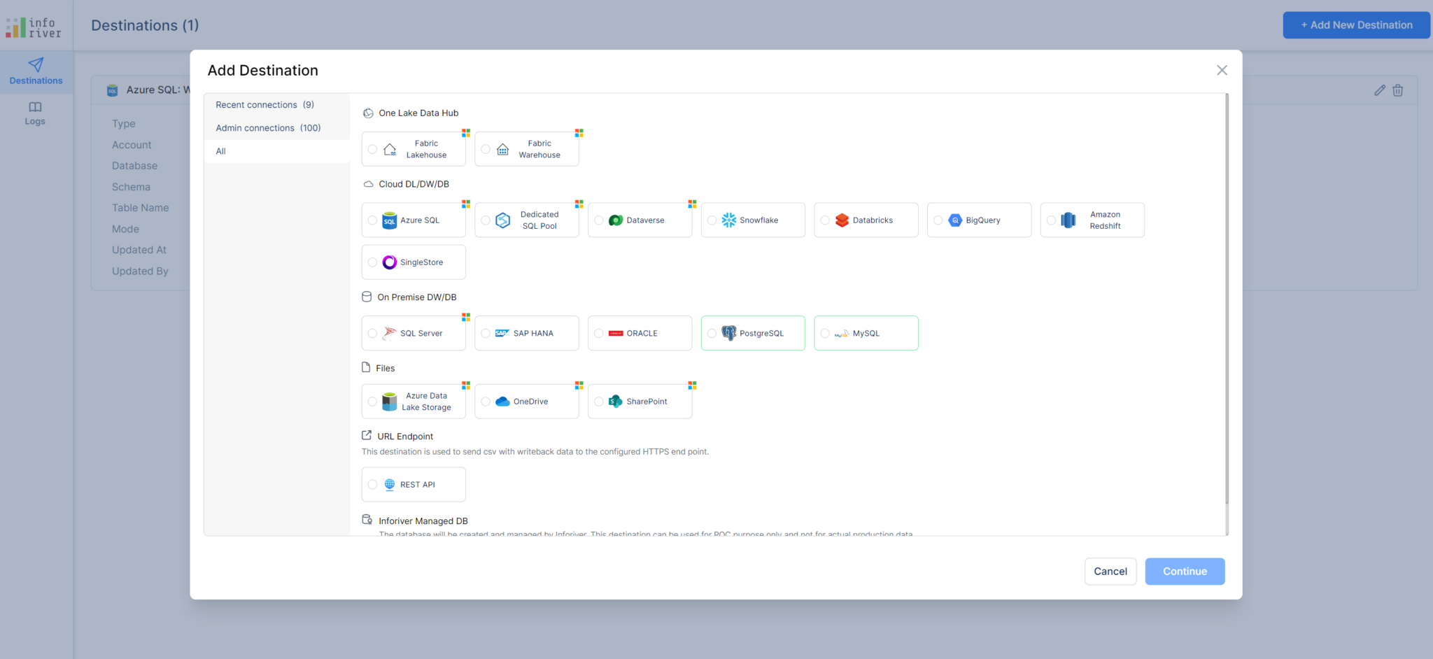 Inforiver supports fast writeback setup and execution for several types of data destinations. Configuring writeback destination(s) is straightforward and involves the same procedure (picture below) for any destination.