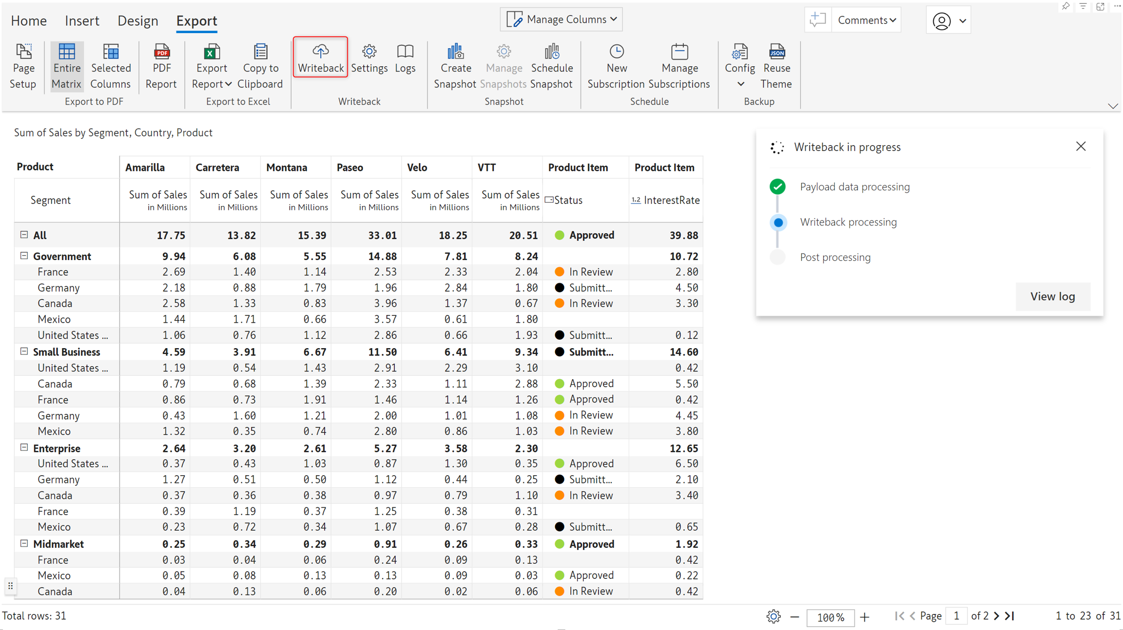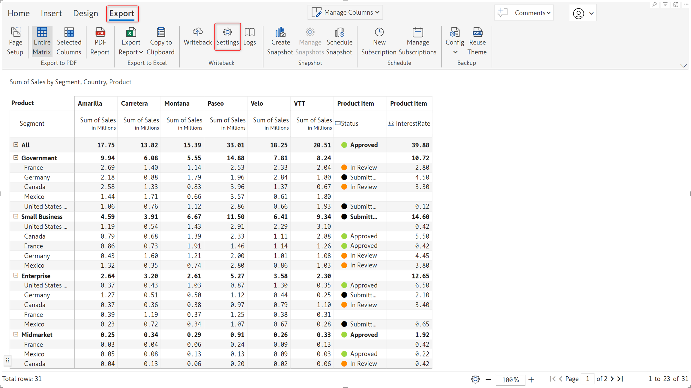 STEP 1: Navigate to the Export ribbon and click the Settings button to open the writeback settings side pane.