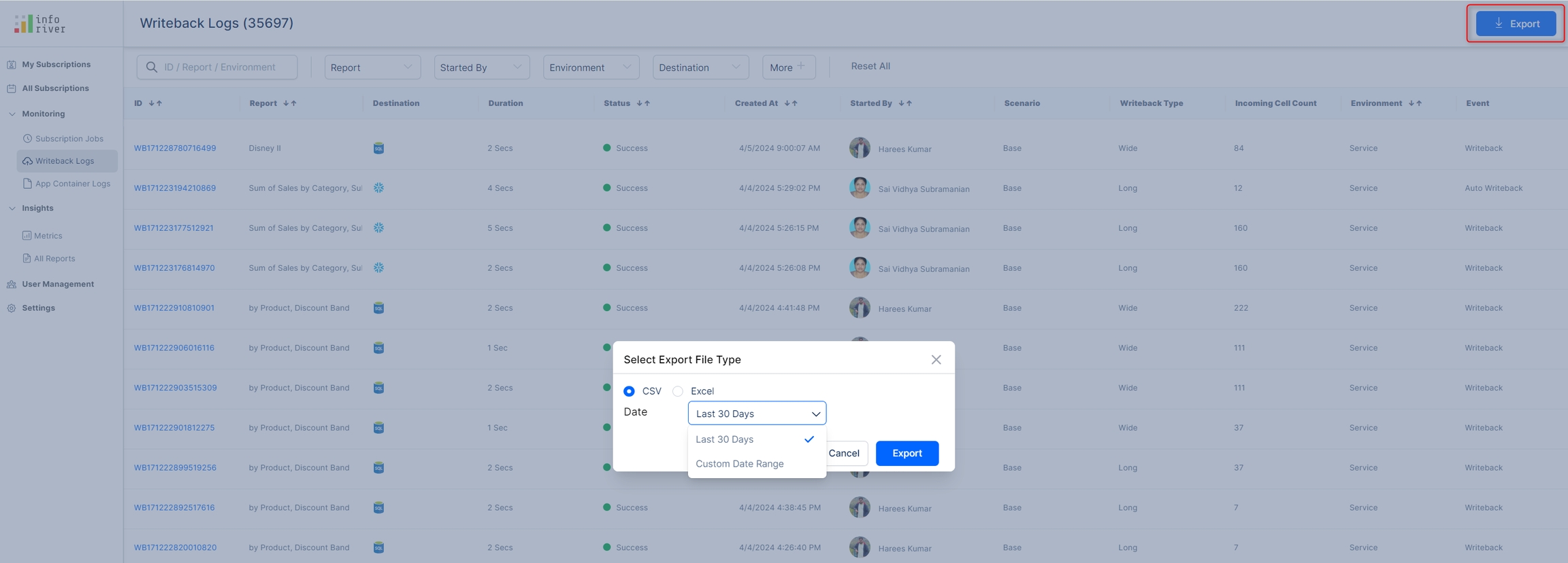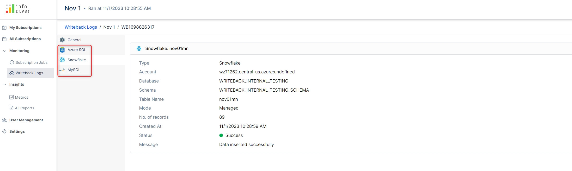 Go to the Writeback Logs tab under the Monitoring section of the Inforiver console.