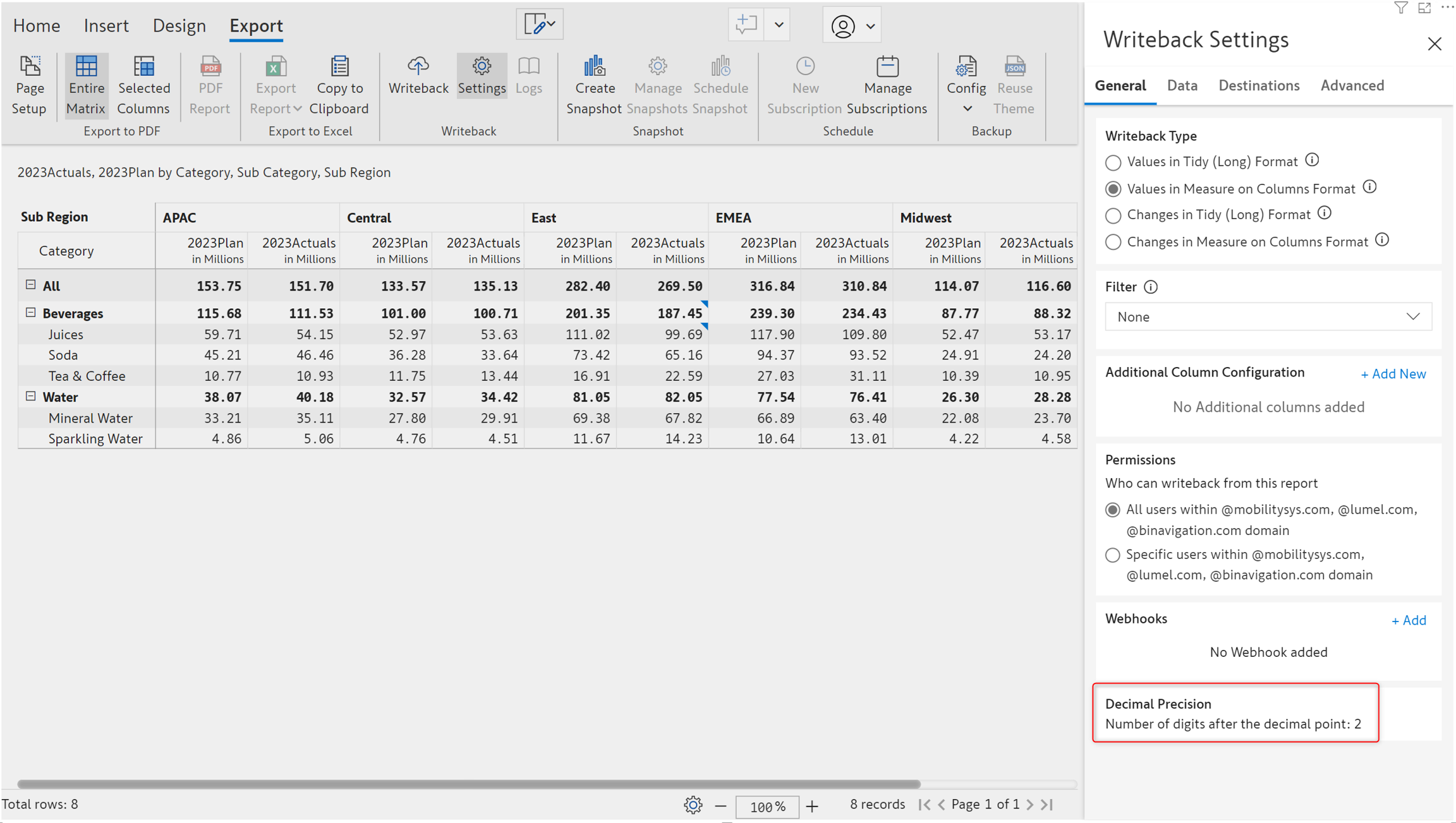 If you require high precision, you can configure Inforiver to write back numerical data with up to ten decimal digits. Any digits beyond 10 will be rounded off.