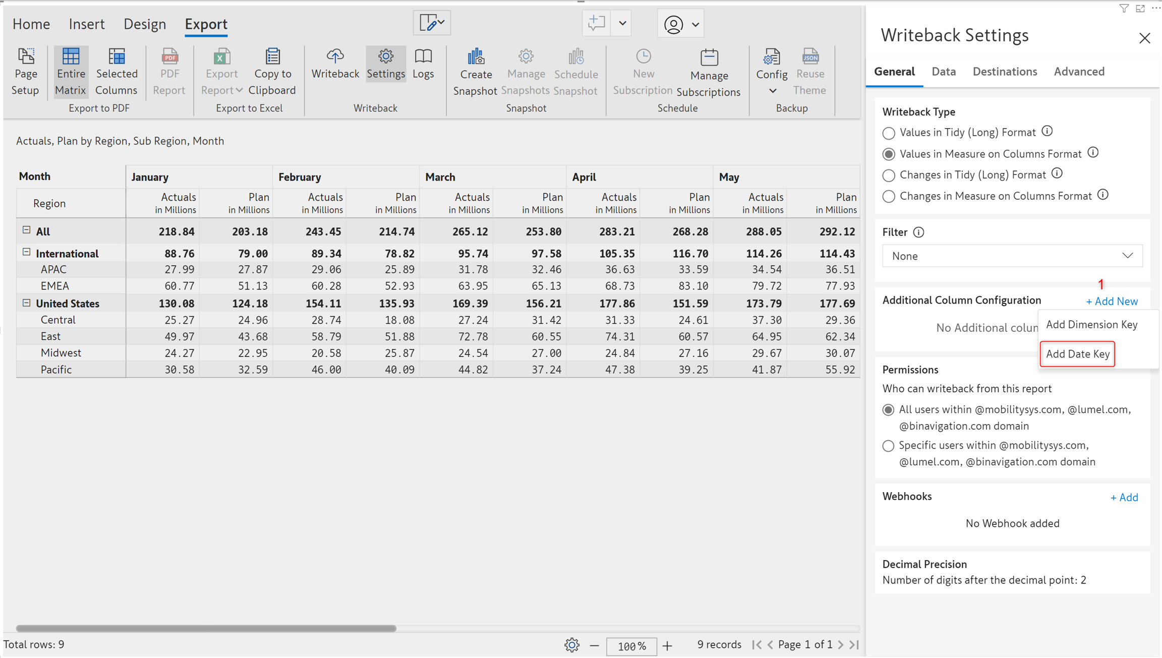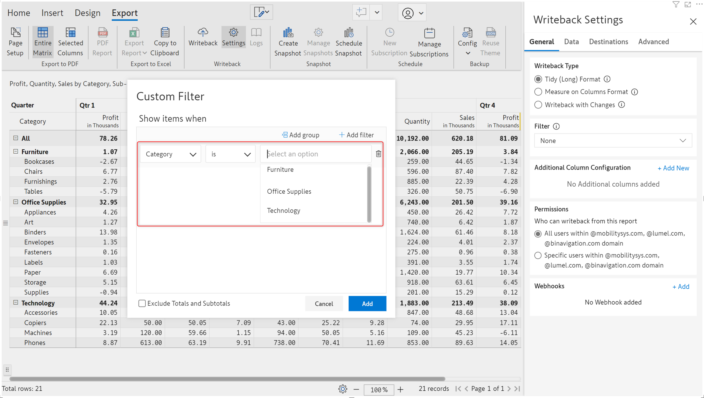 You can retain Matrix filters while writing back data. If you have applied any visual filters, when you trigger a writeback, you will be prompted to choose between writing back all the data or filtered data only.