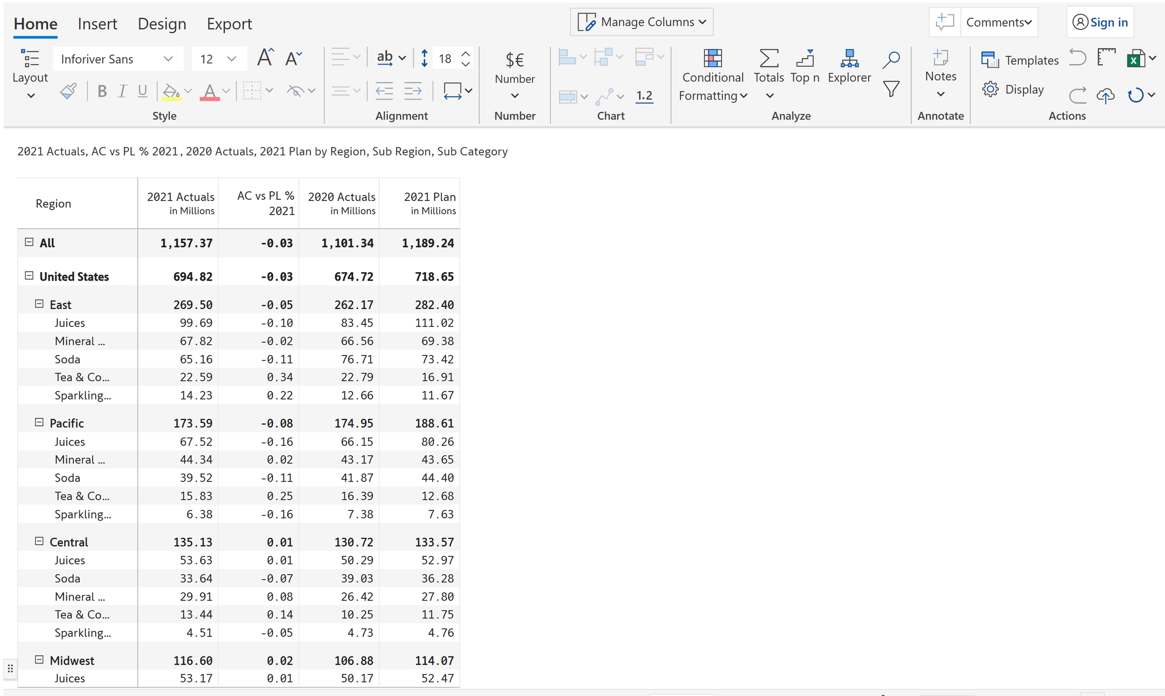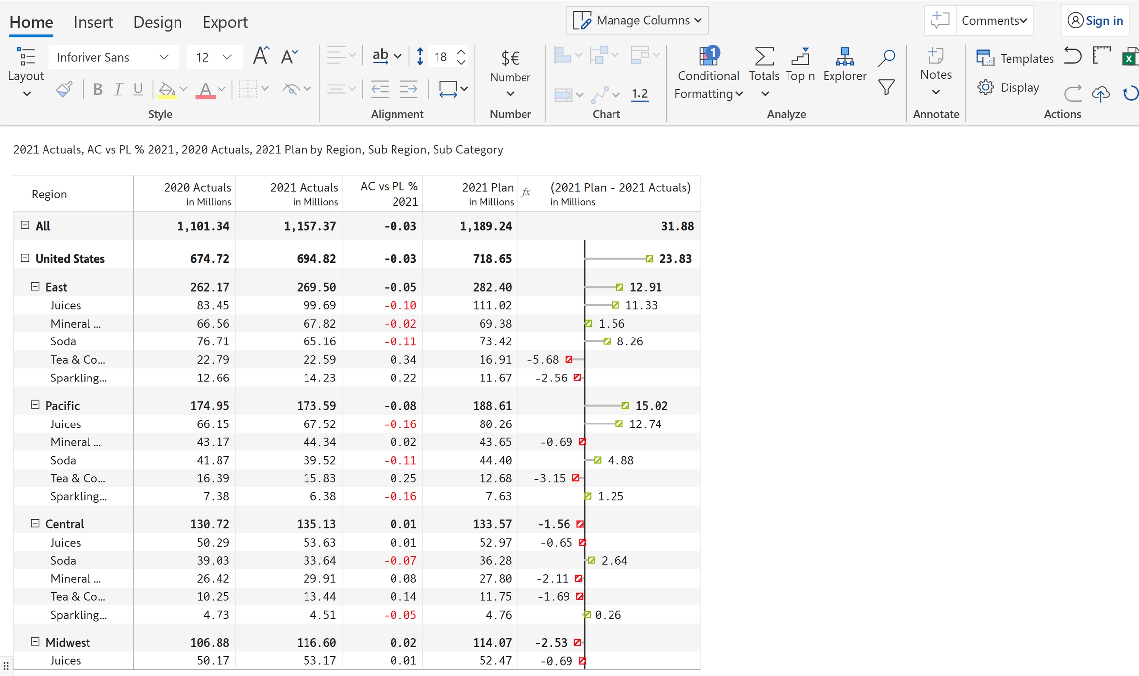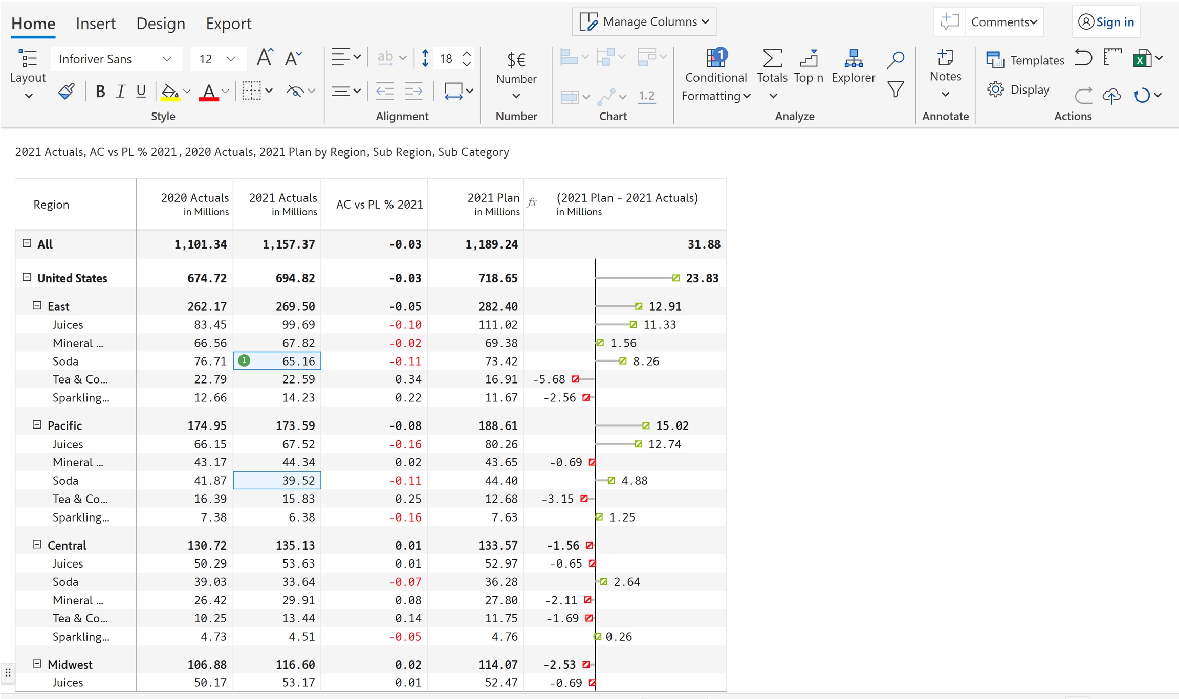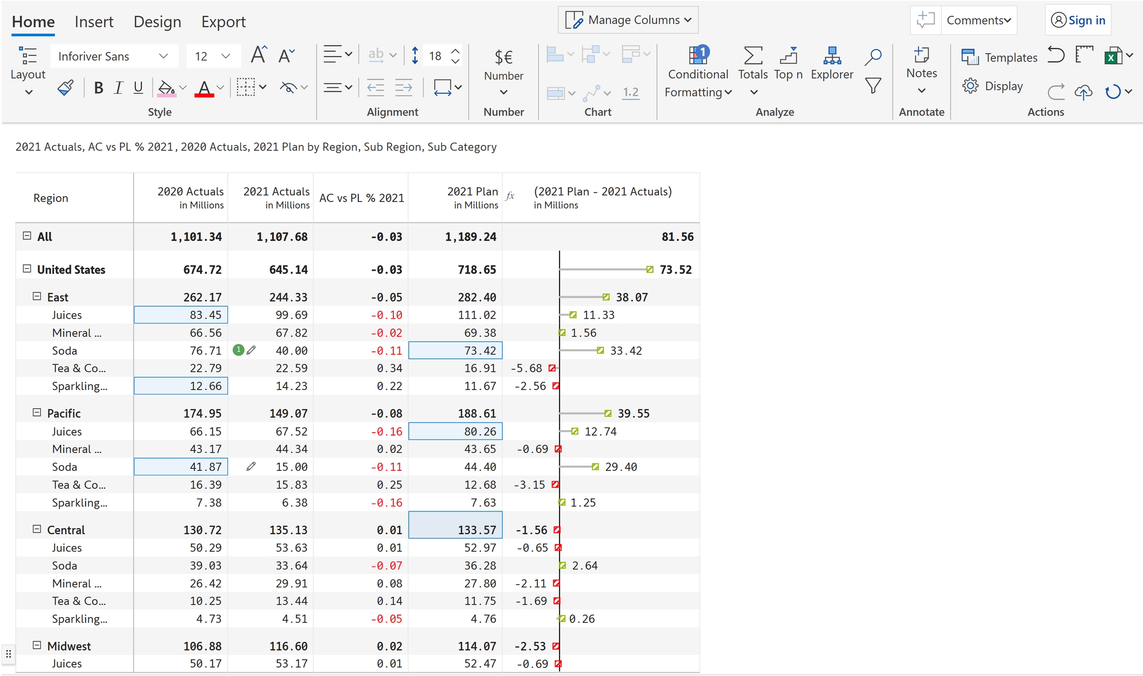 In the below example, you can see that two values are edited in '2021 Actuals'.