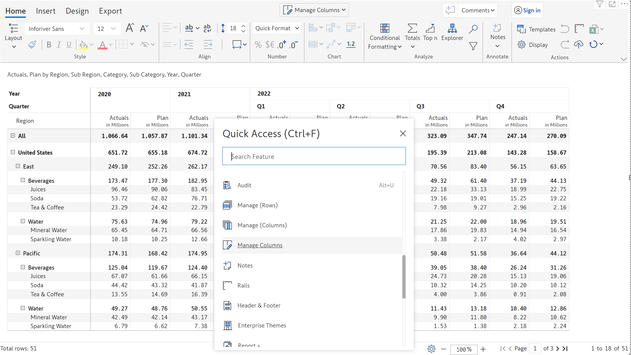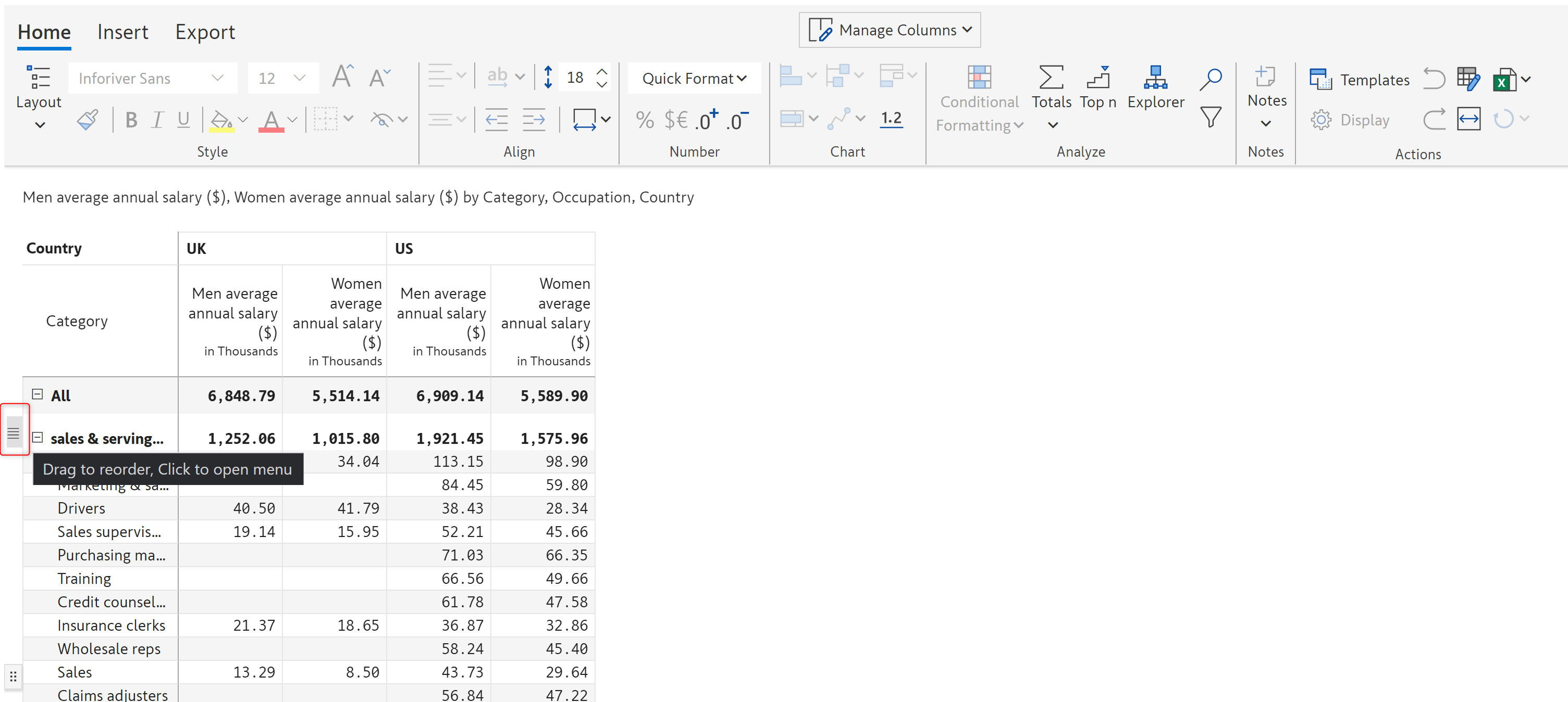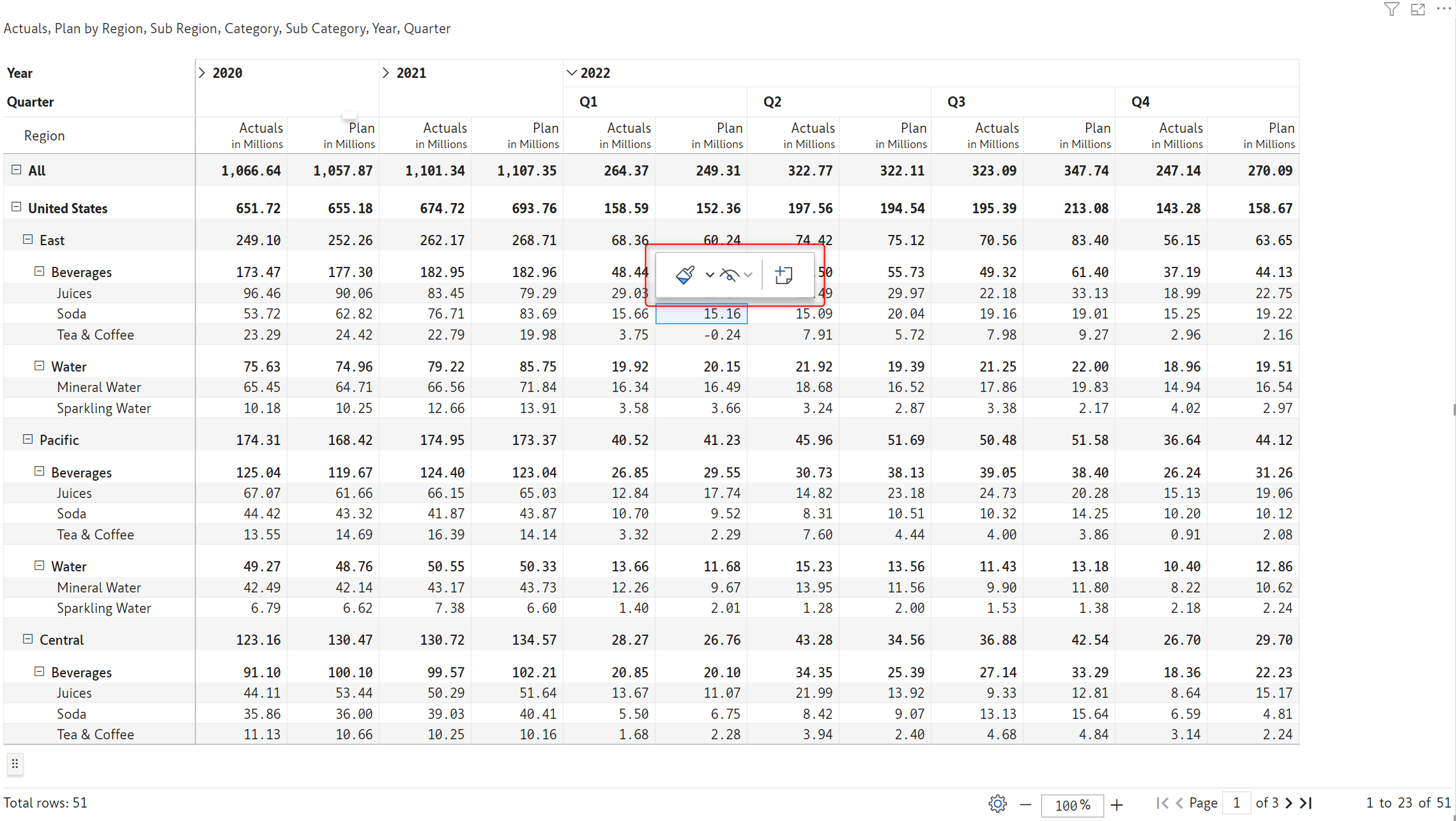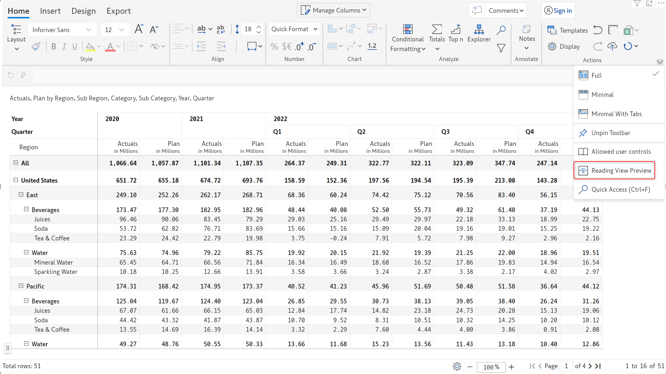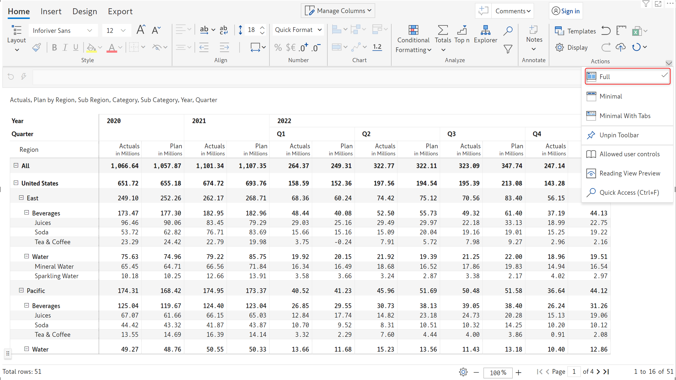Inforiver now offers Excel-like floating toolbar in the reading view mode on the selected report elements (row, column, or cell) for improved discoverability of features and improved user experience.