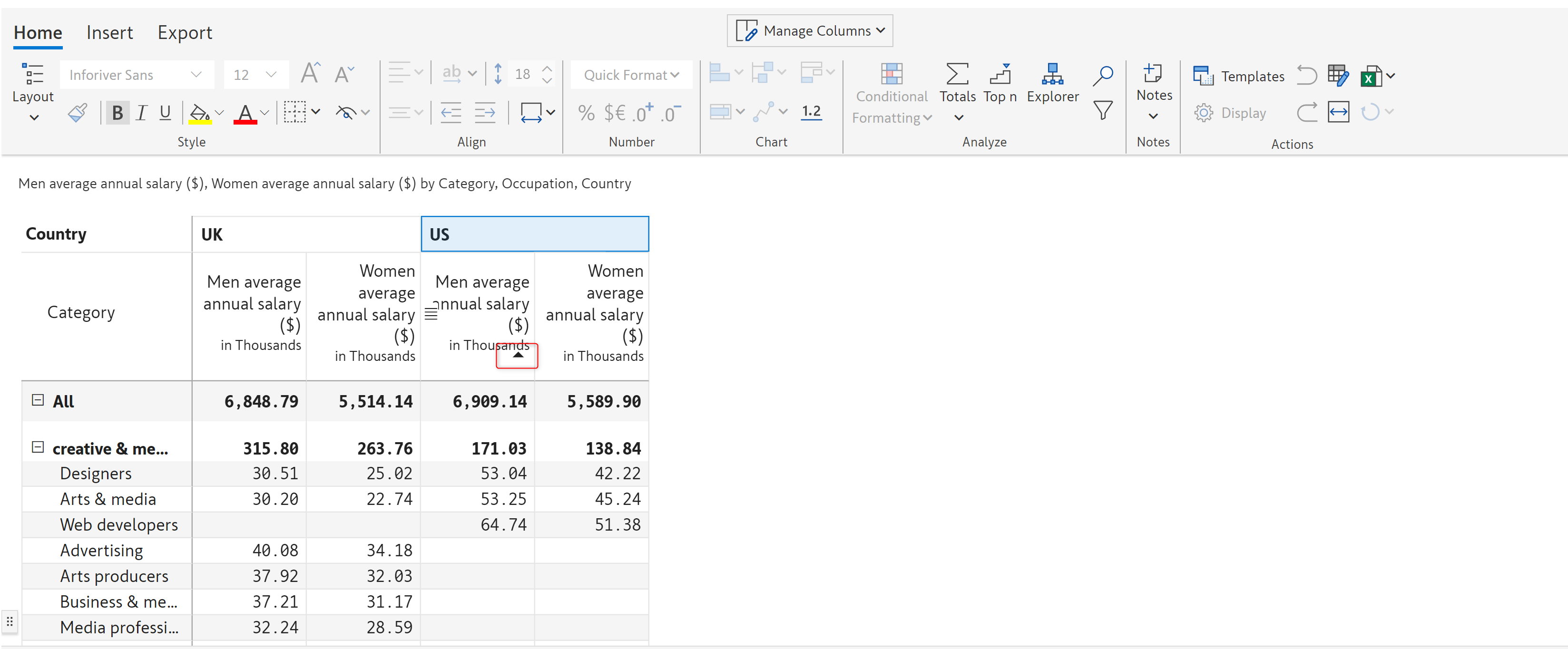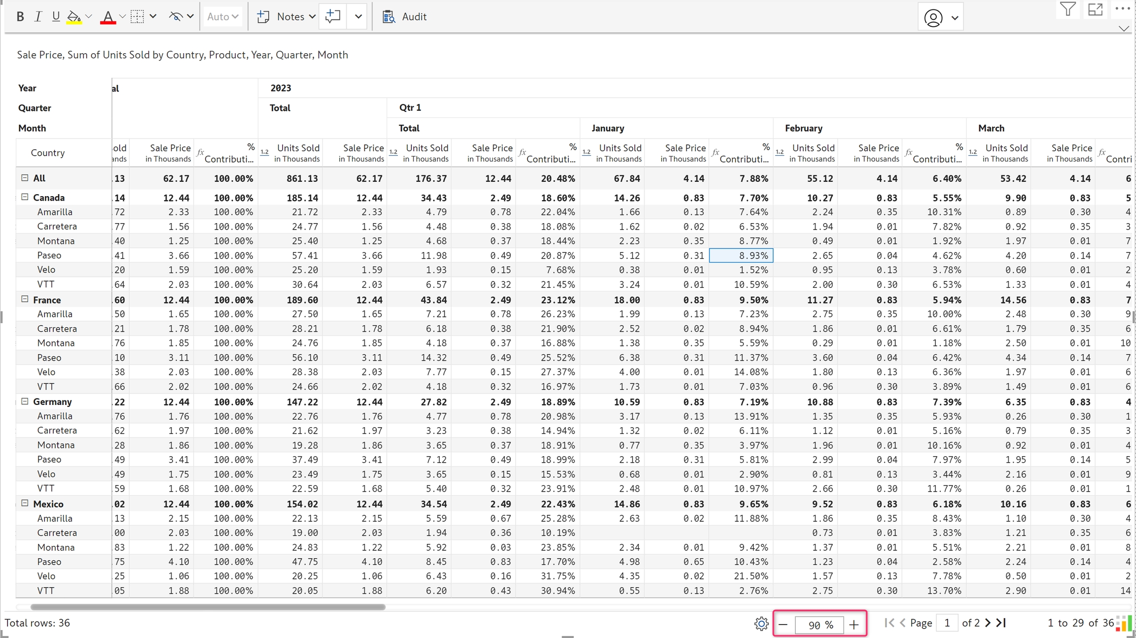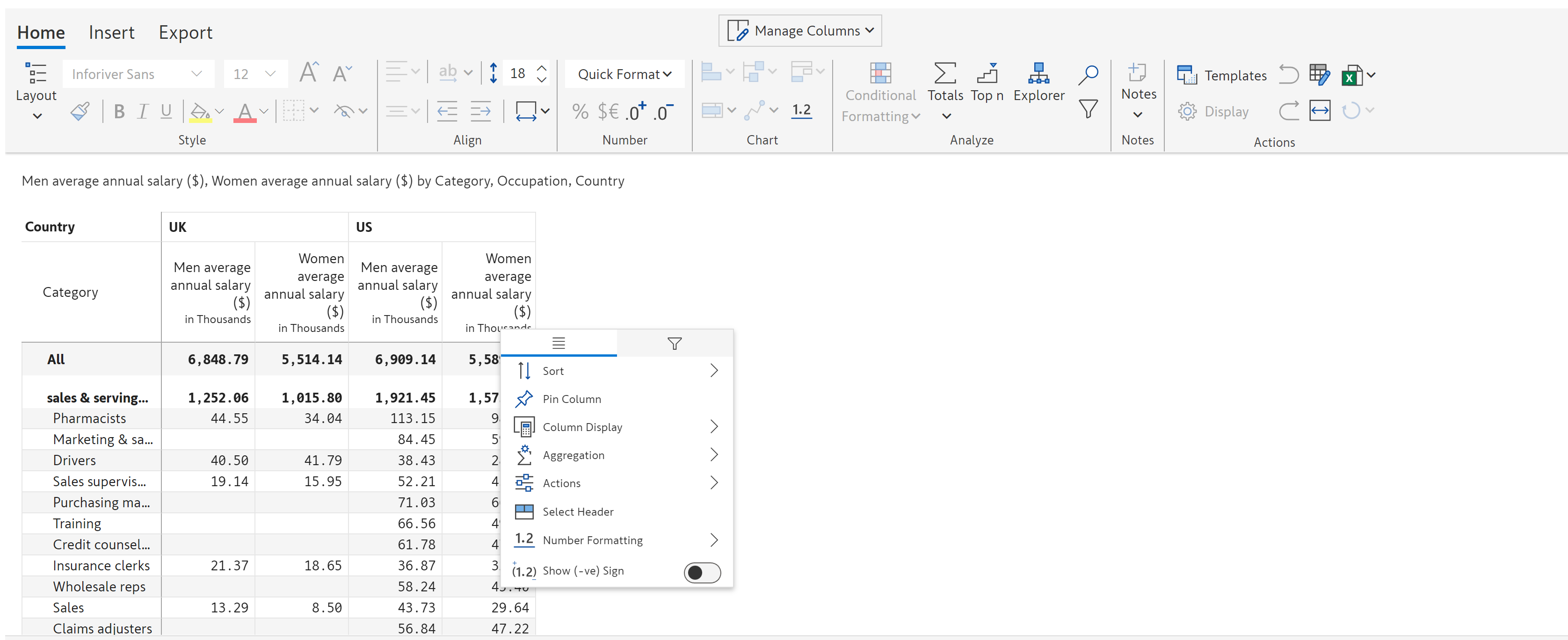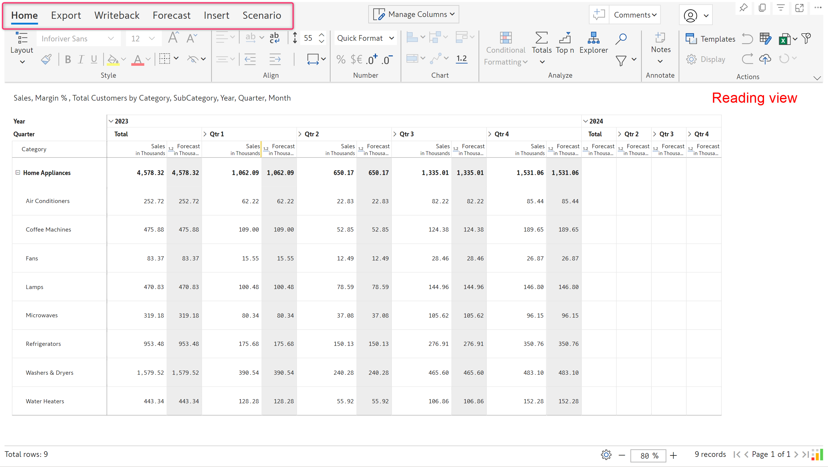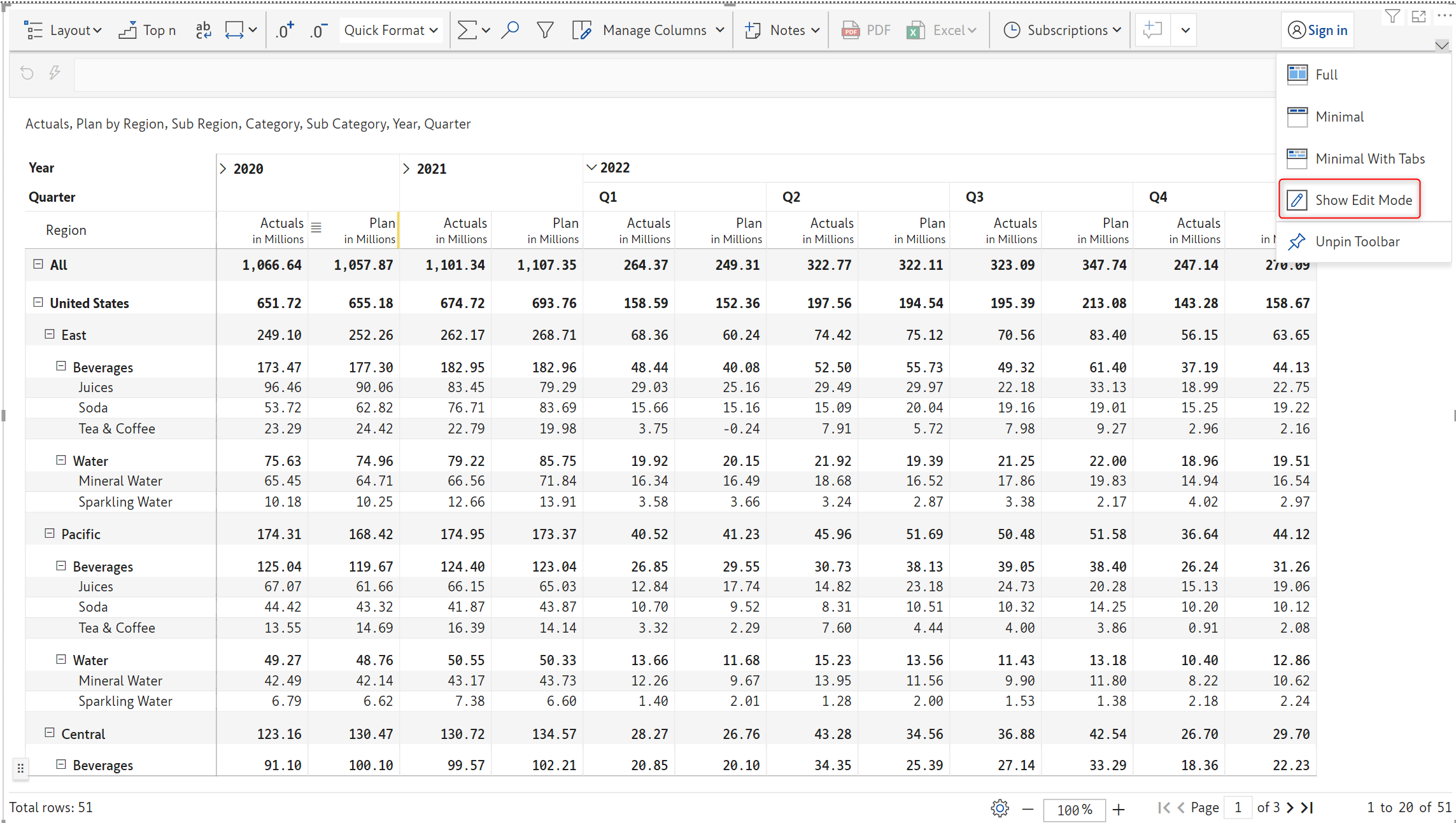 Inforiver now offers Excel-like floating toolbar in the reading view mode on the selected report elements (row, column, or cell) for improved discoverability of features and improved user experience.