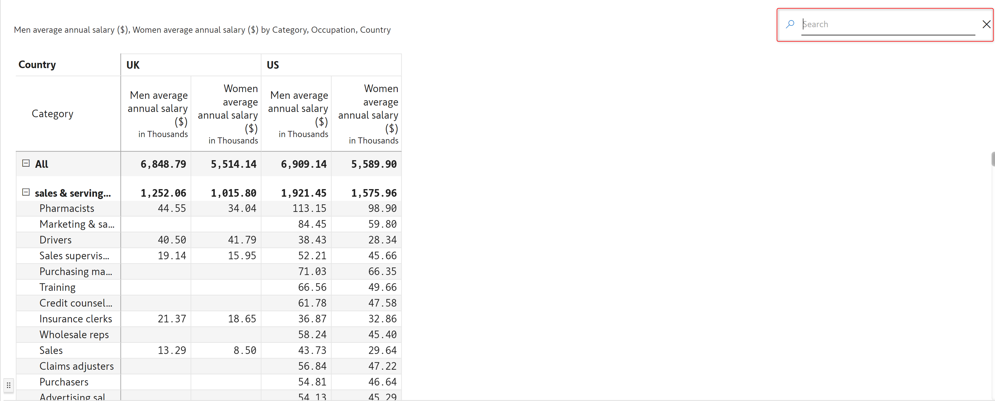 Enabling this option will display the search icon and search bar at the top of the report in the reading view mode.