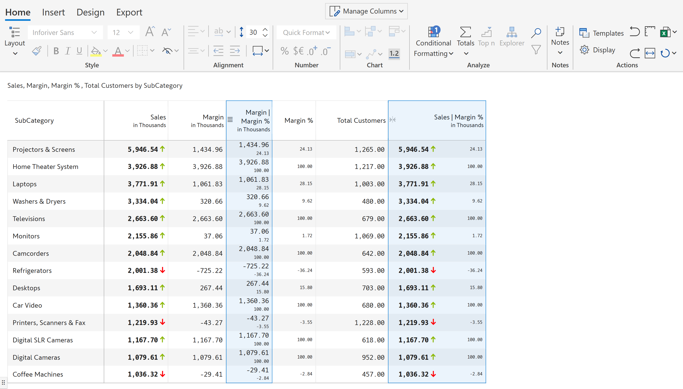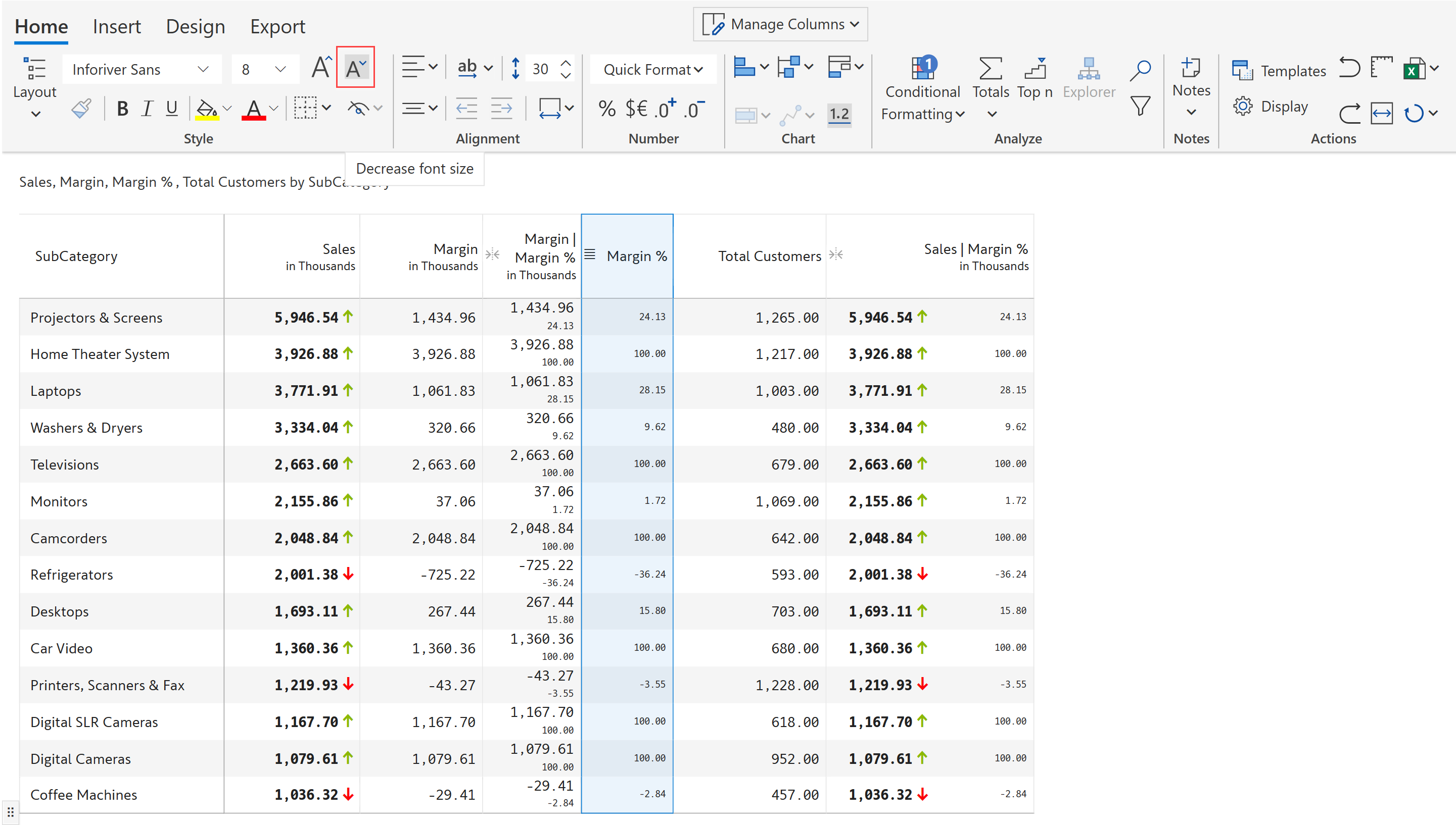 **STEP 2:** Let's keep the **Sales** as it is and reduce the font size of the **Margin %** column.