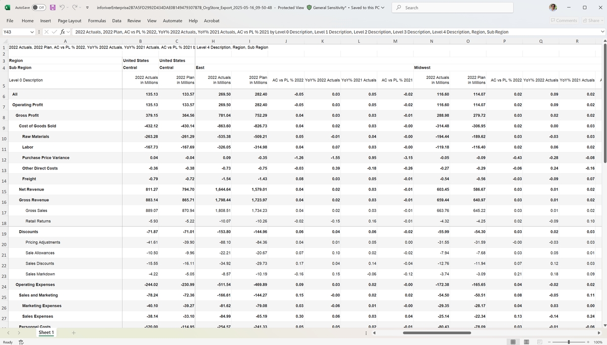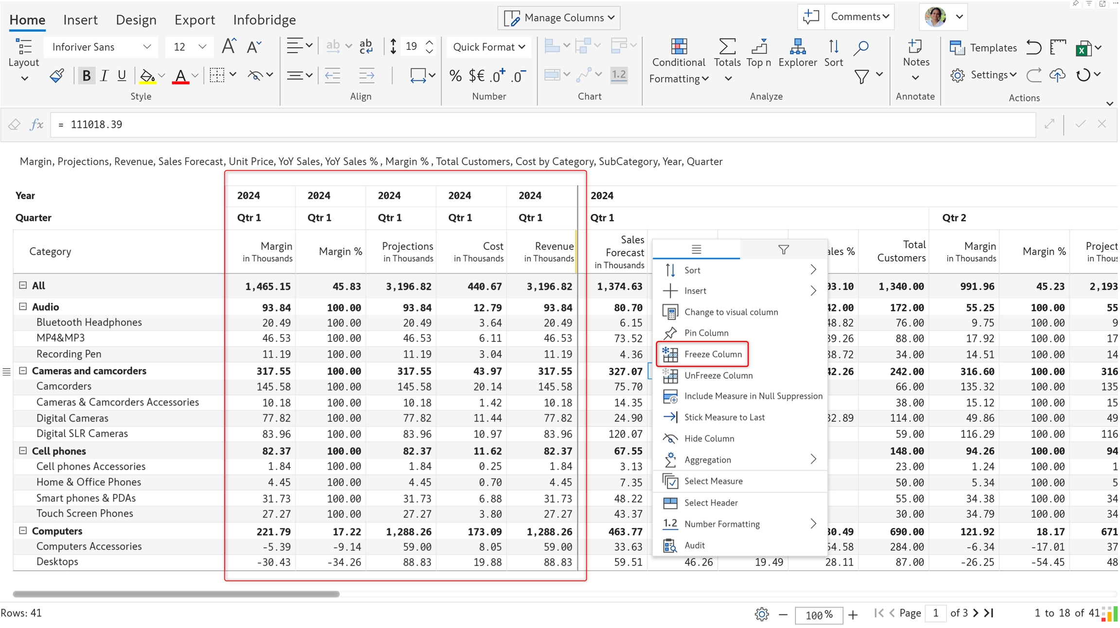 Navigating large reports with numerous rows and columns can make data comparison cumbersome with a significant amount of scrolling. With Inforiver Matrix, you can freeze selected rows and columns to keep key metrics in view - making analysis faster and more efficient.