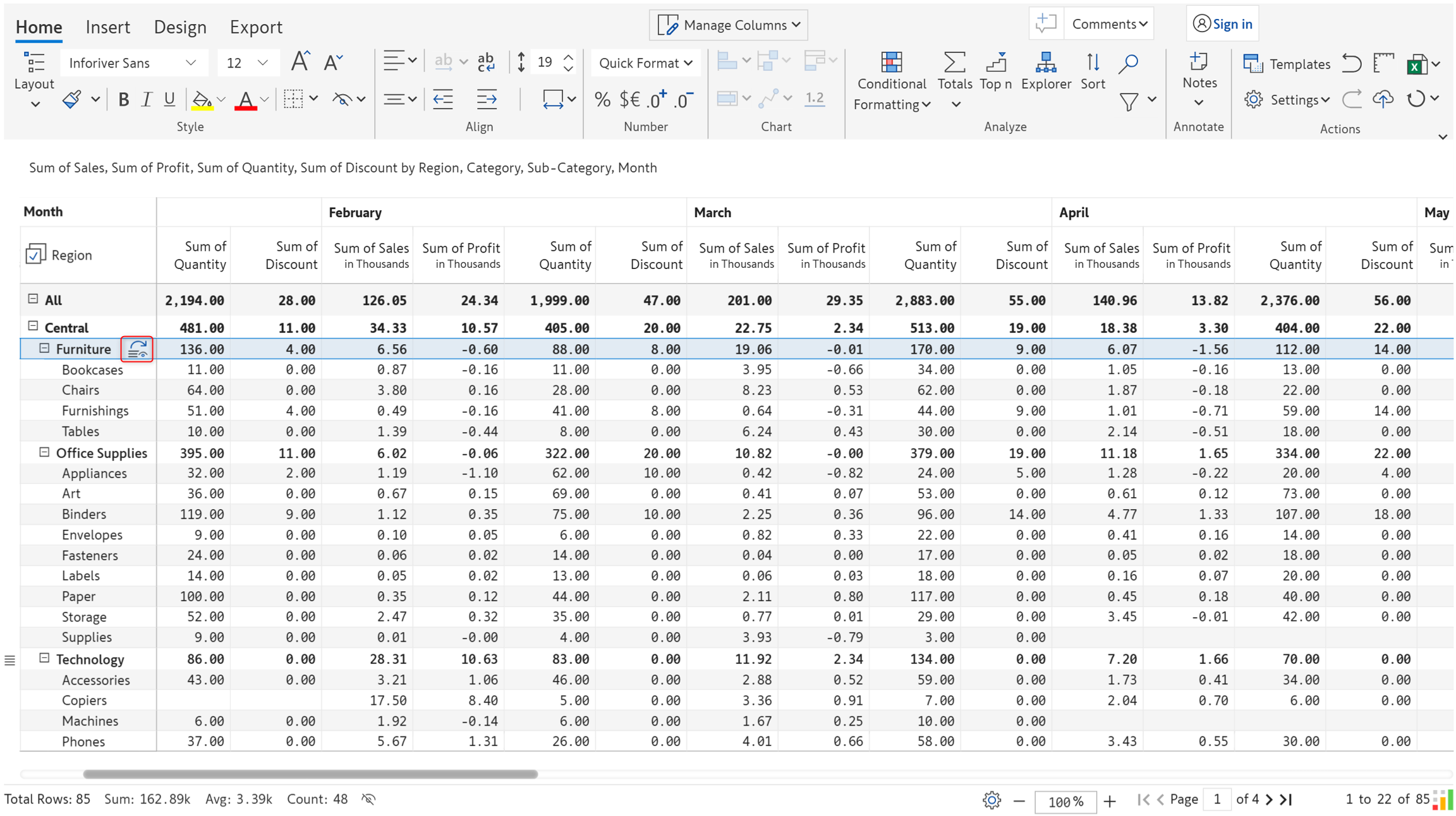 In this section, let's explore the various options in Inforiver to customize rows in your reports.