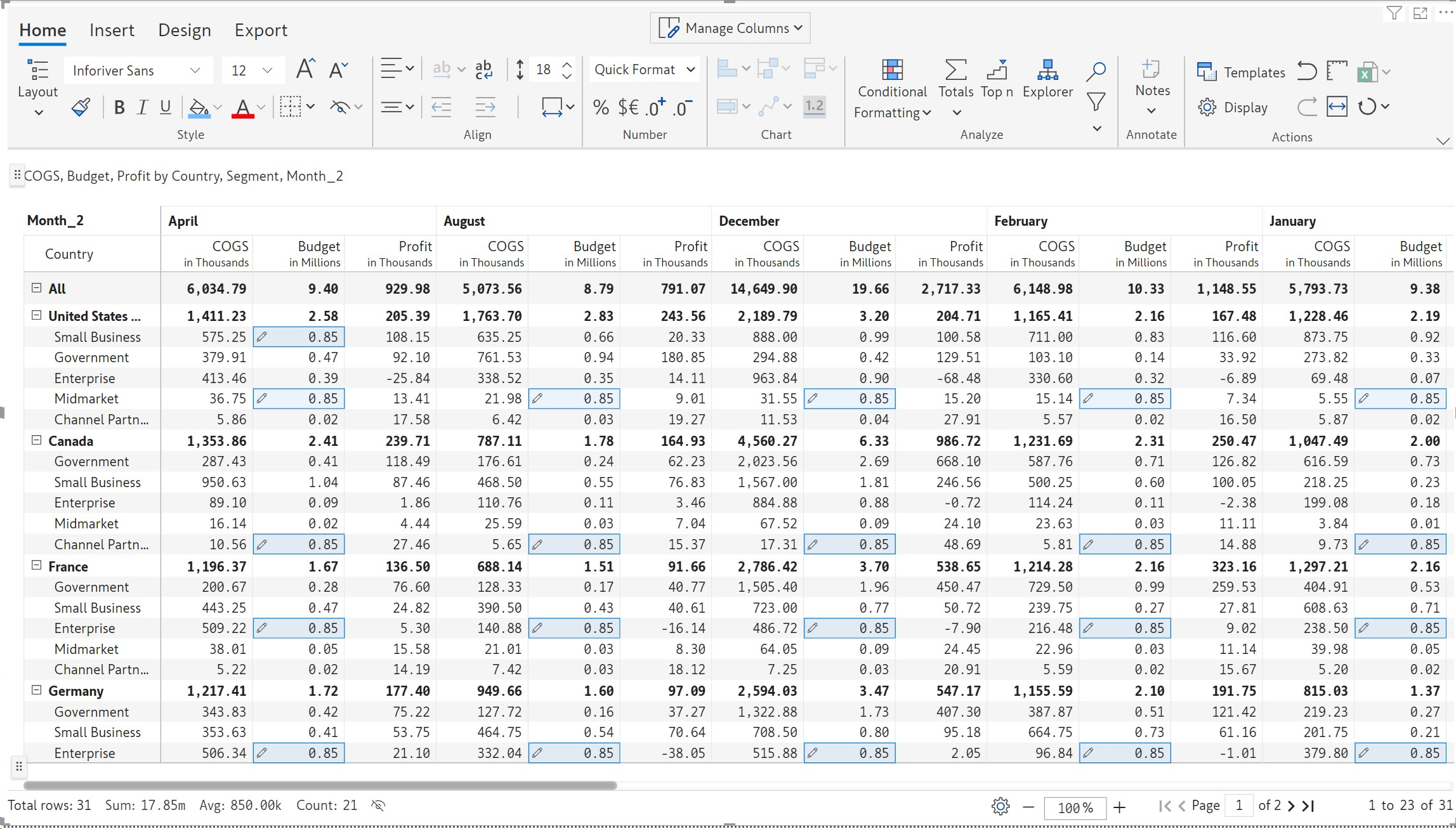 You can also override the data in multiple cells with the same value, for instance, set a fixed budget. Select the cells and update the value in any cell; the updated value will be cascaded to all the selected cells.