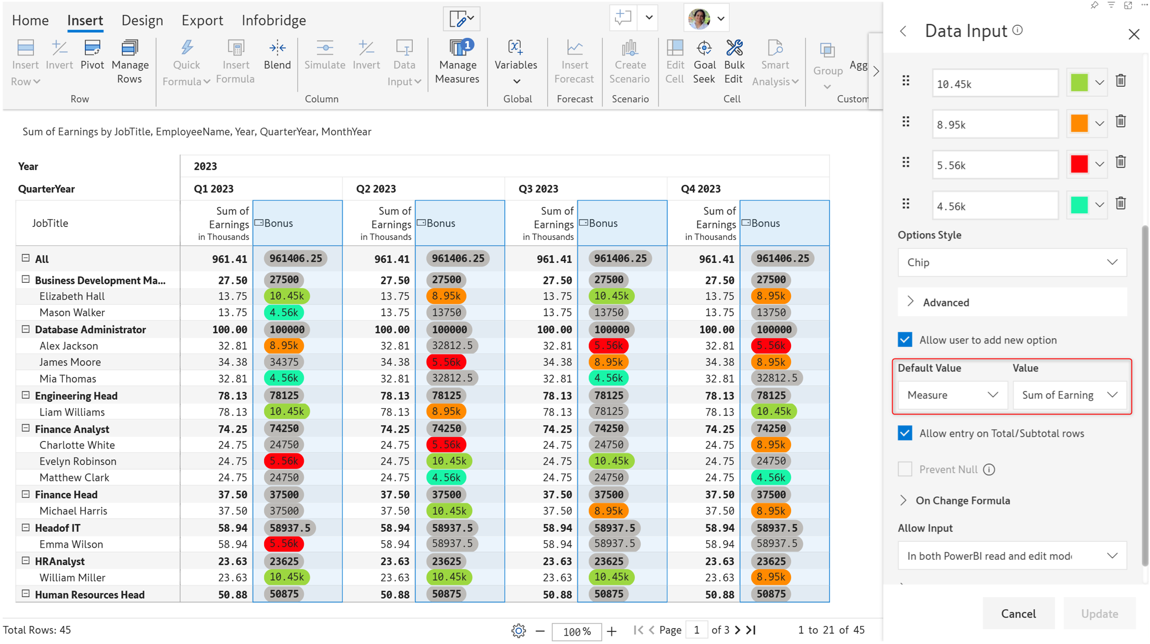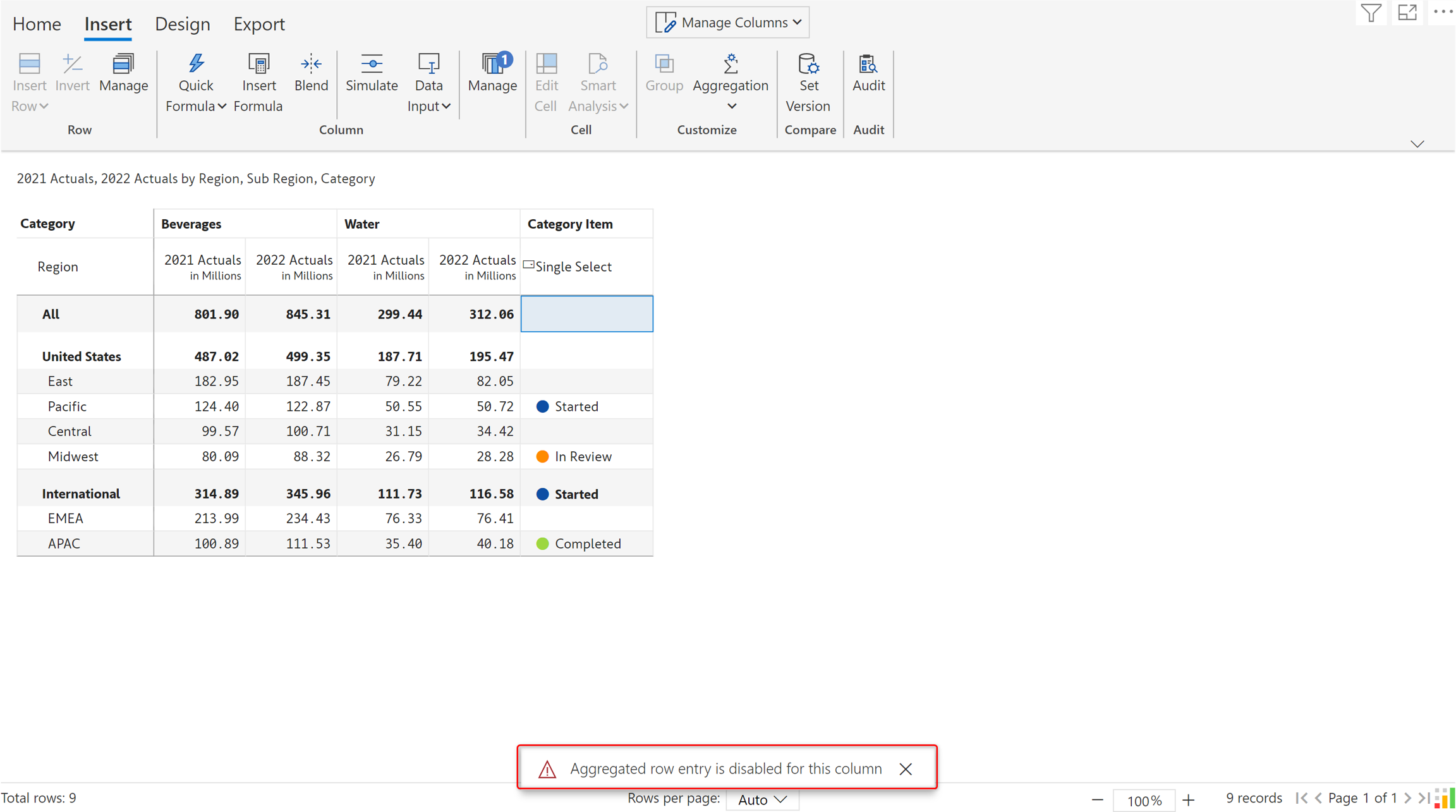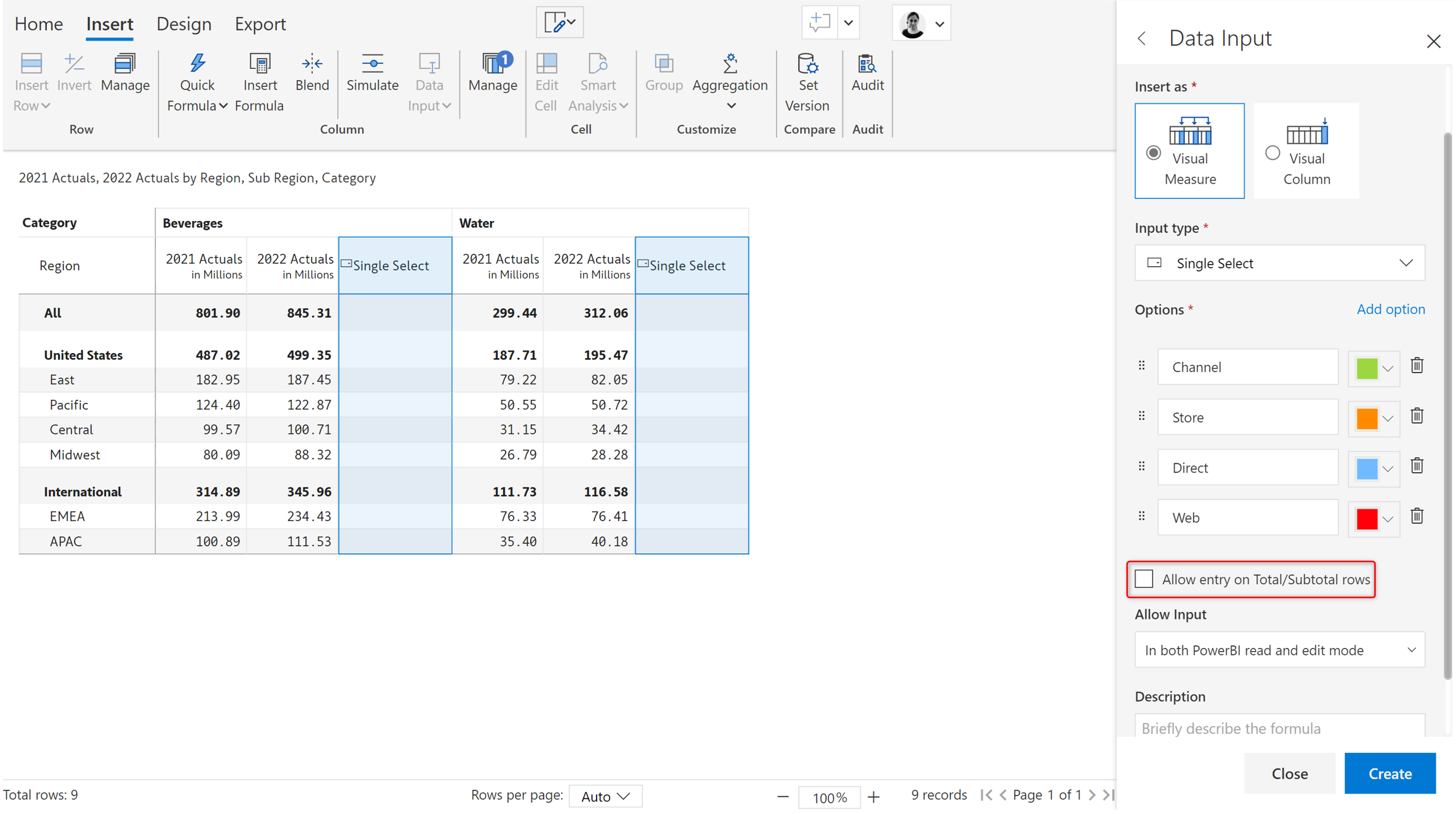 5. Entry in total/subtotal rows