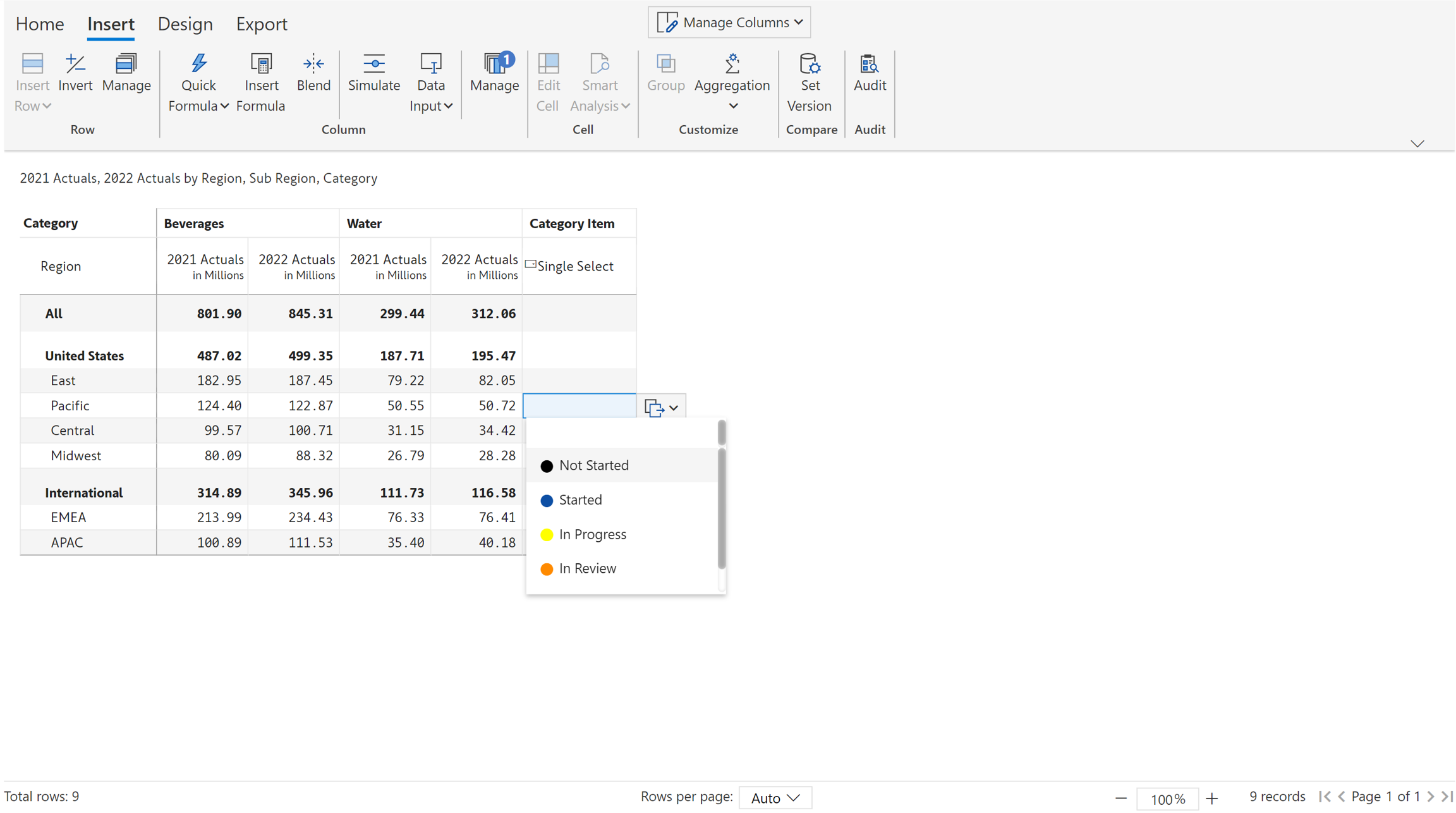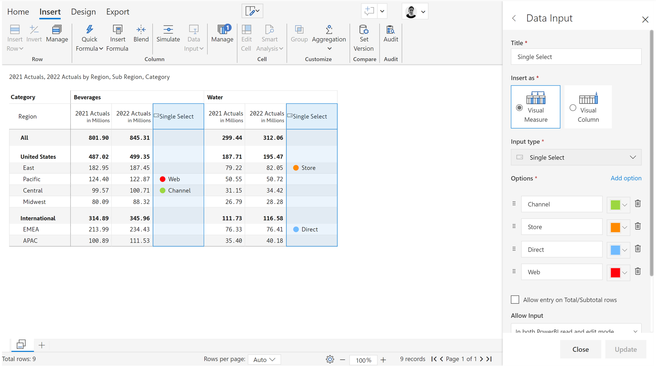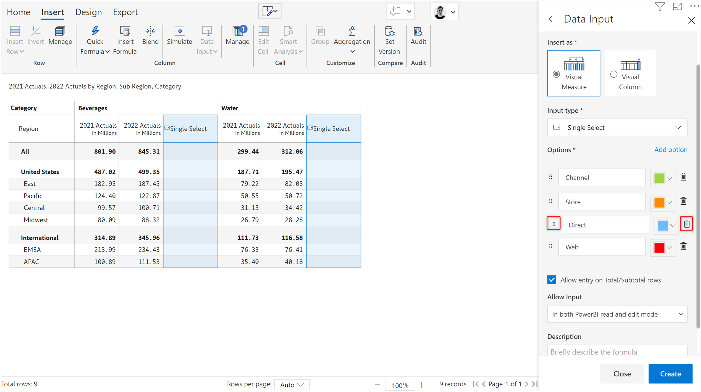 5. Entry in total/subtotal rows