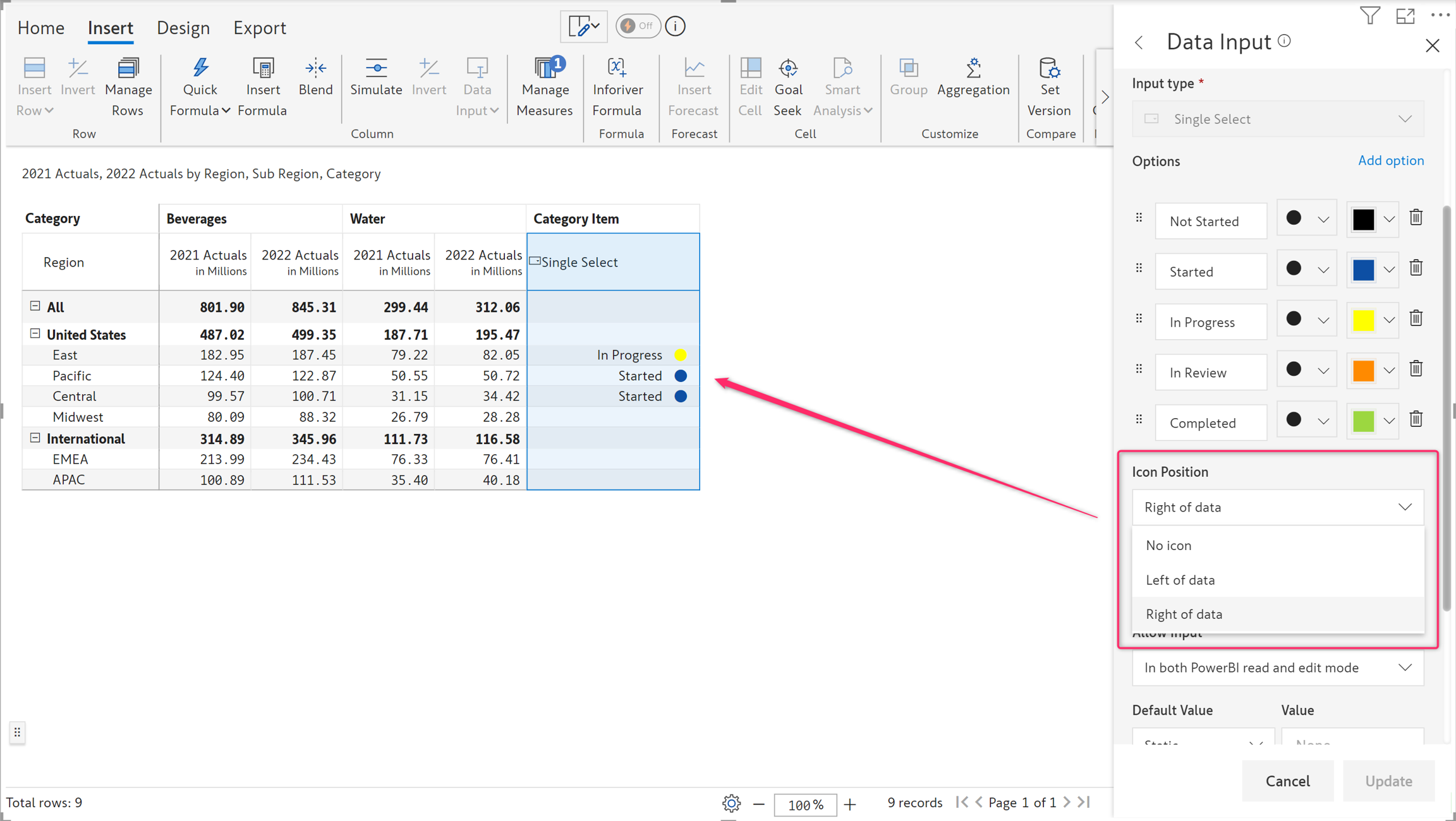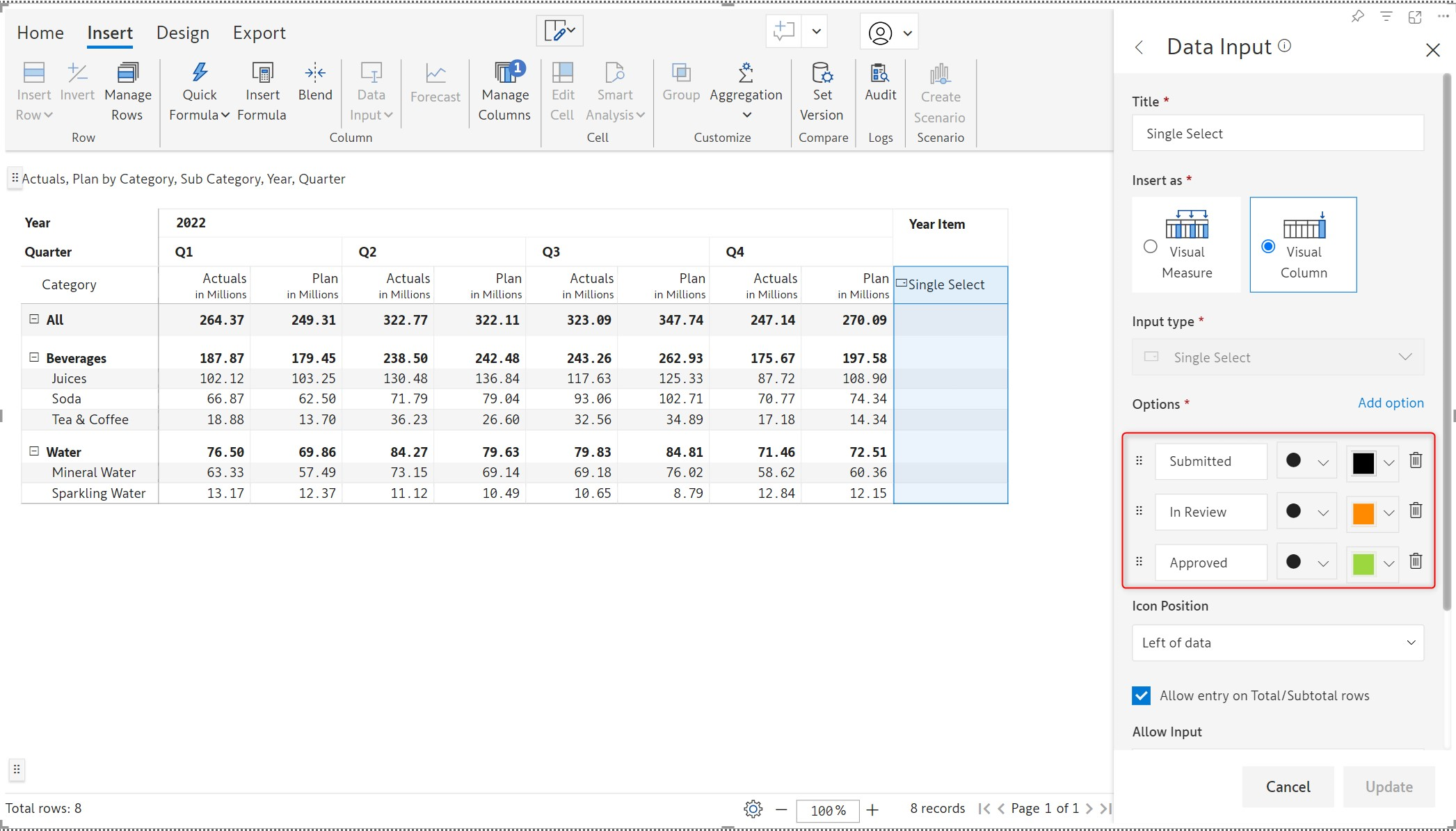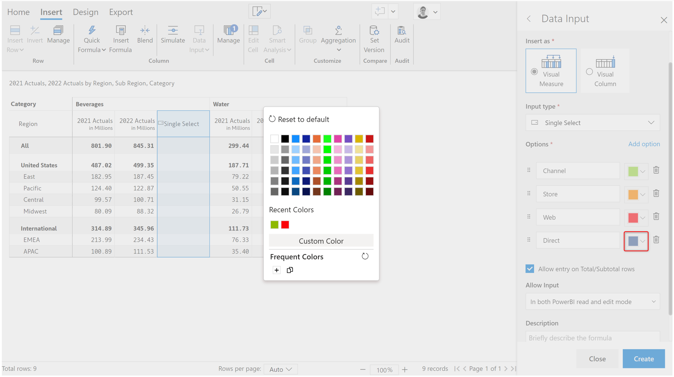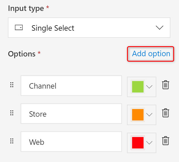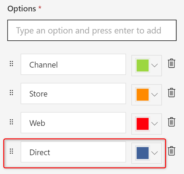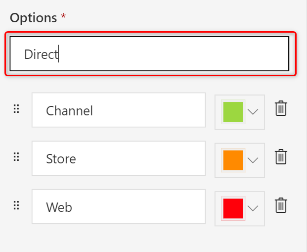 Changing the color associated with each option