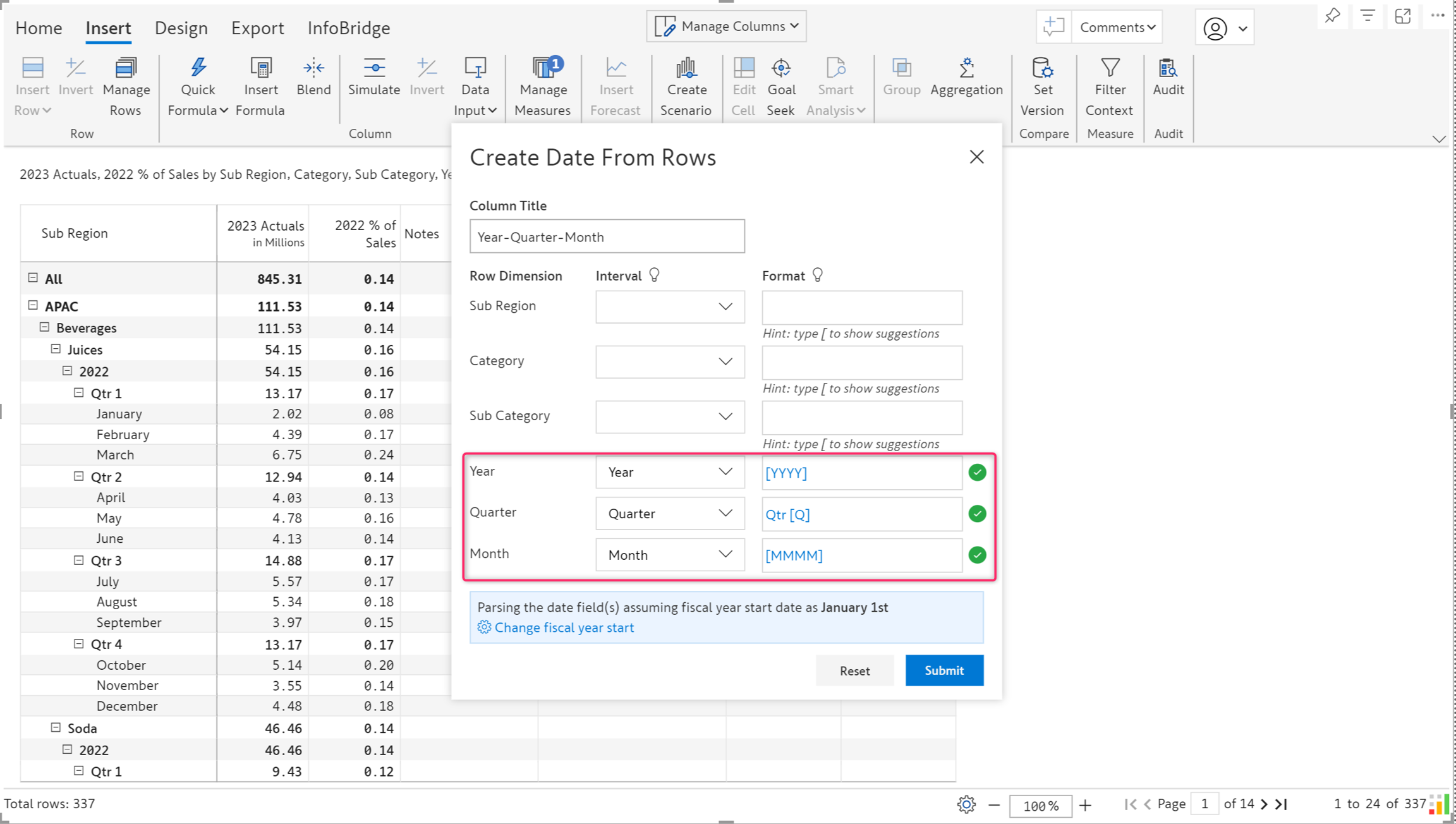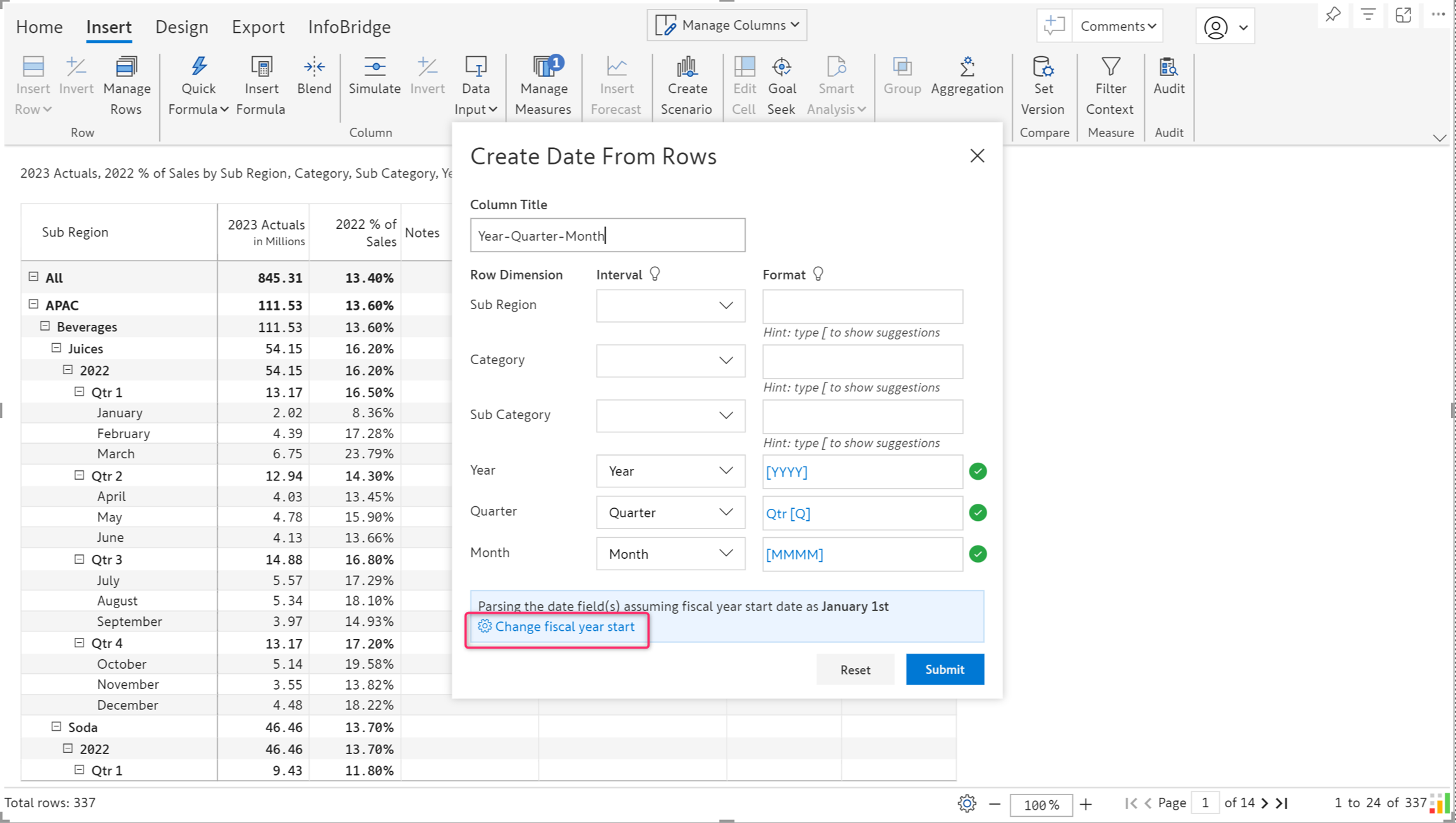 Setting the start of the fiscal year