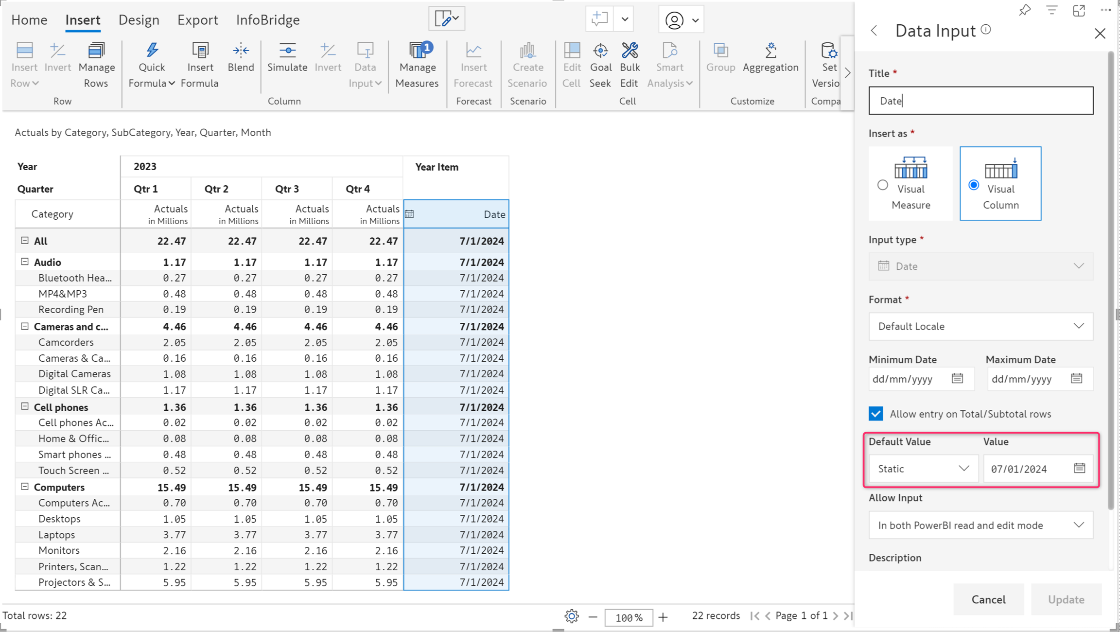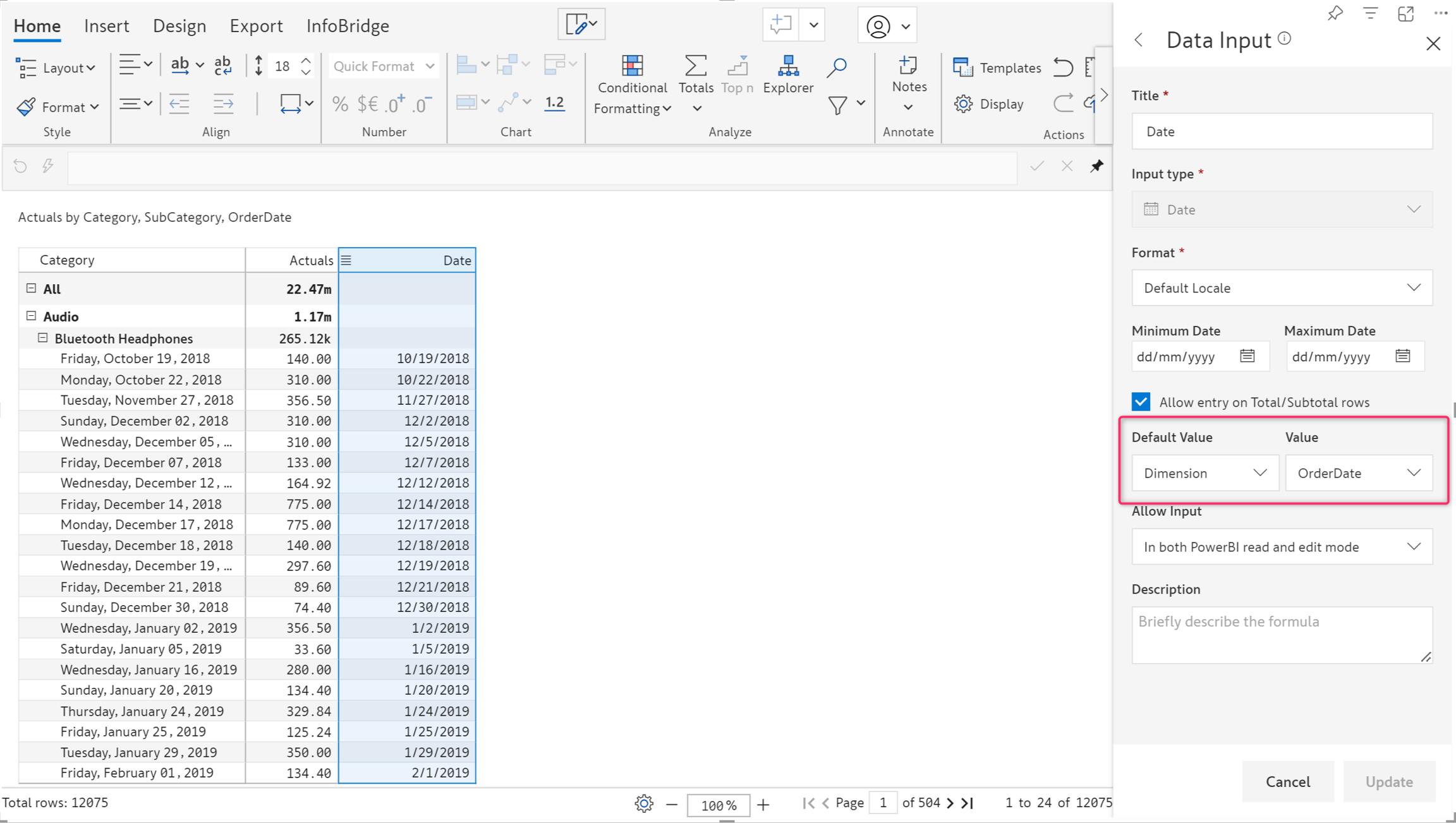 Entering a date