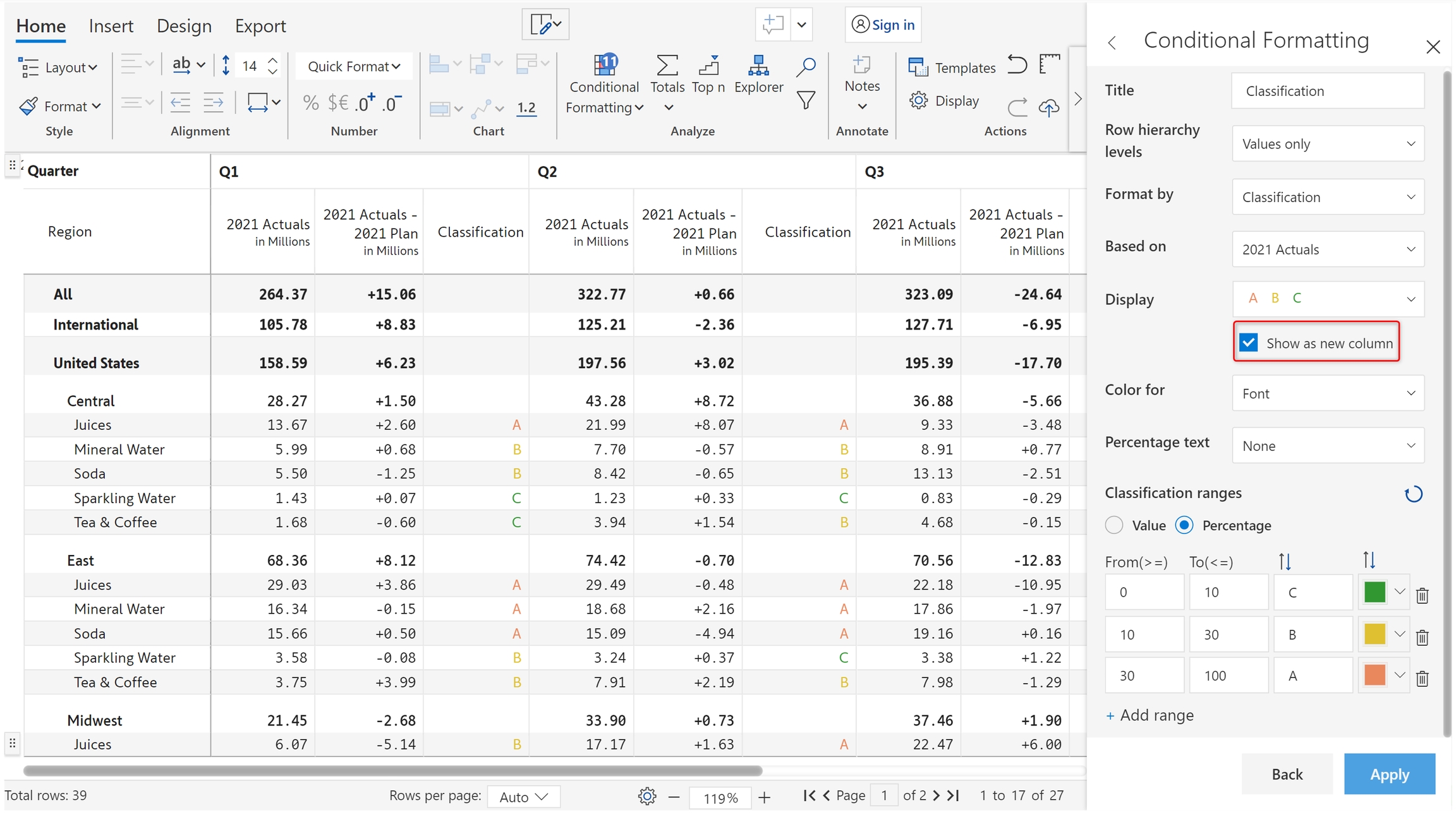 1.3. You can also have the classifications appear in a separate column if required. Check the Show as new column checkbox.
