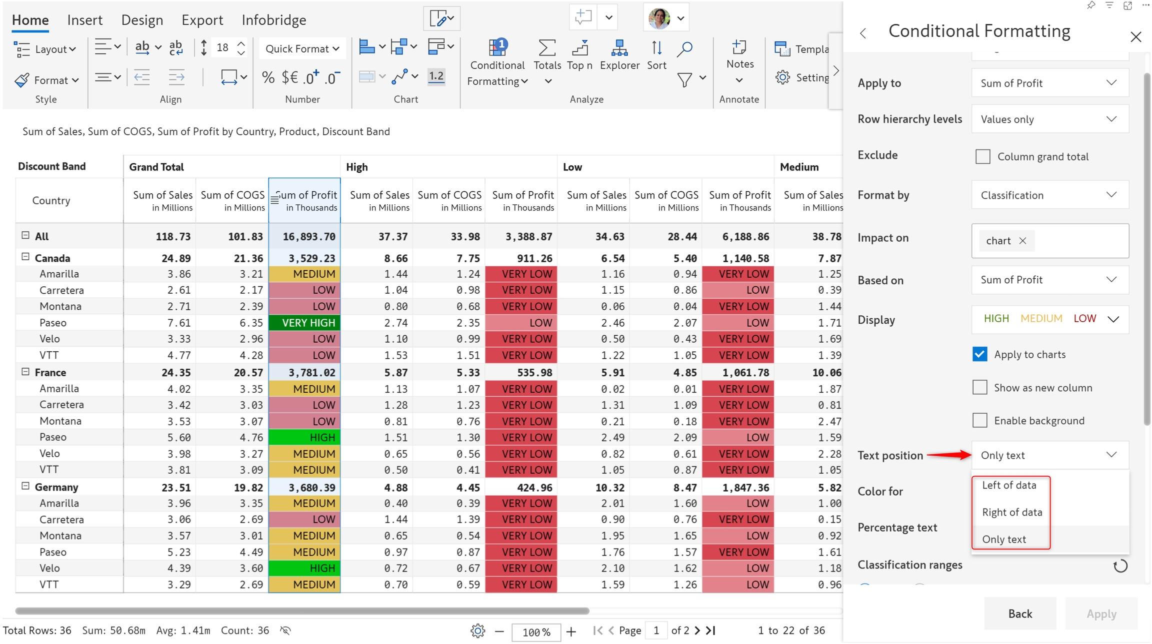 1.6. You can also choose to display only the classification text by selecting Only Text from the Text position dropdown.