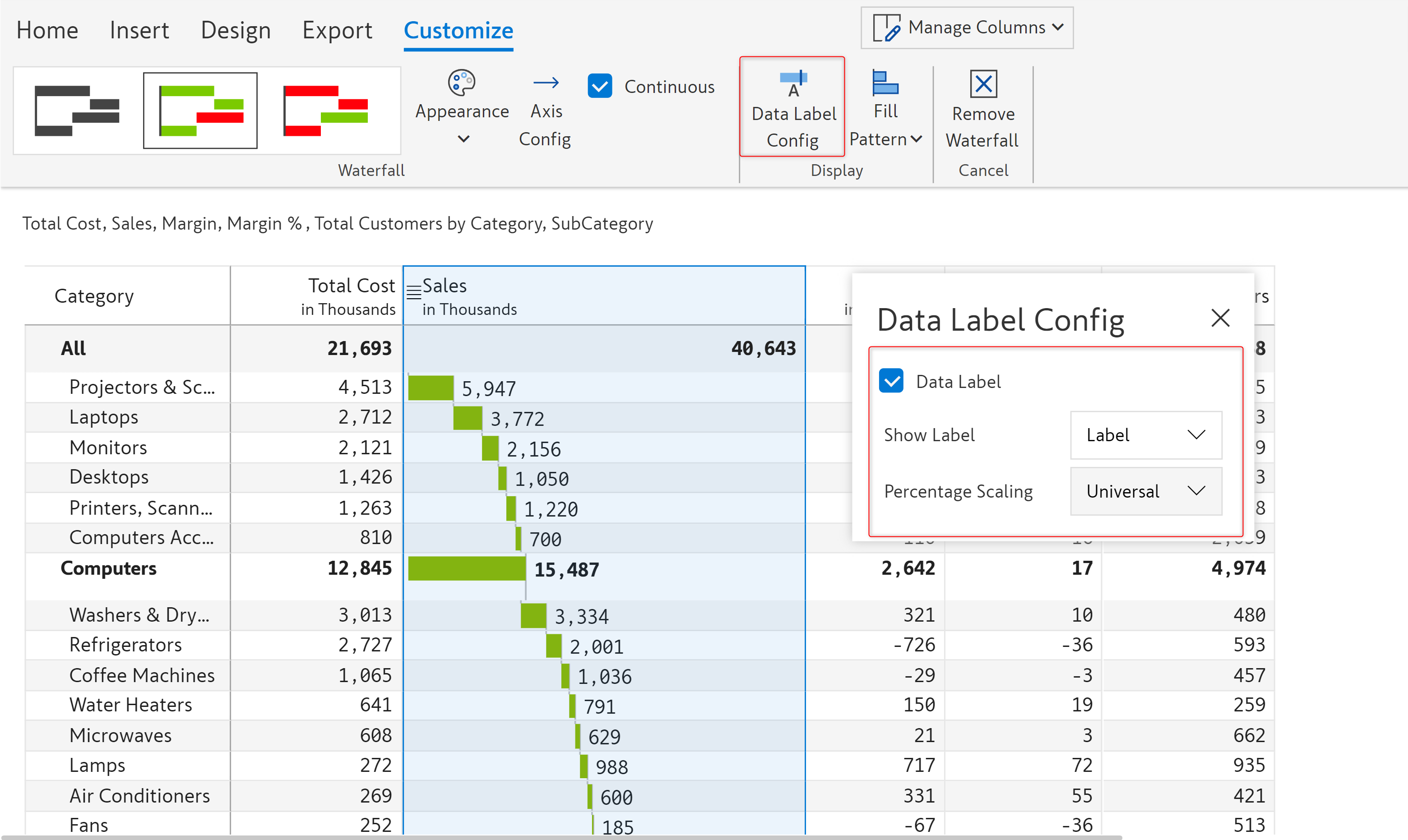 <figure><img src="https://content.gitbook.com/content/sB9HAei8v4FfKkH9M4gw/blobs/WuGvmiYX8r4NkI1vrYcX/waterfall-datalabel-config.png" alt=""><figcaption><p>Waterfall chart data label configuration</p></figcaption></figure>