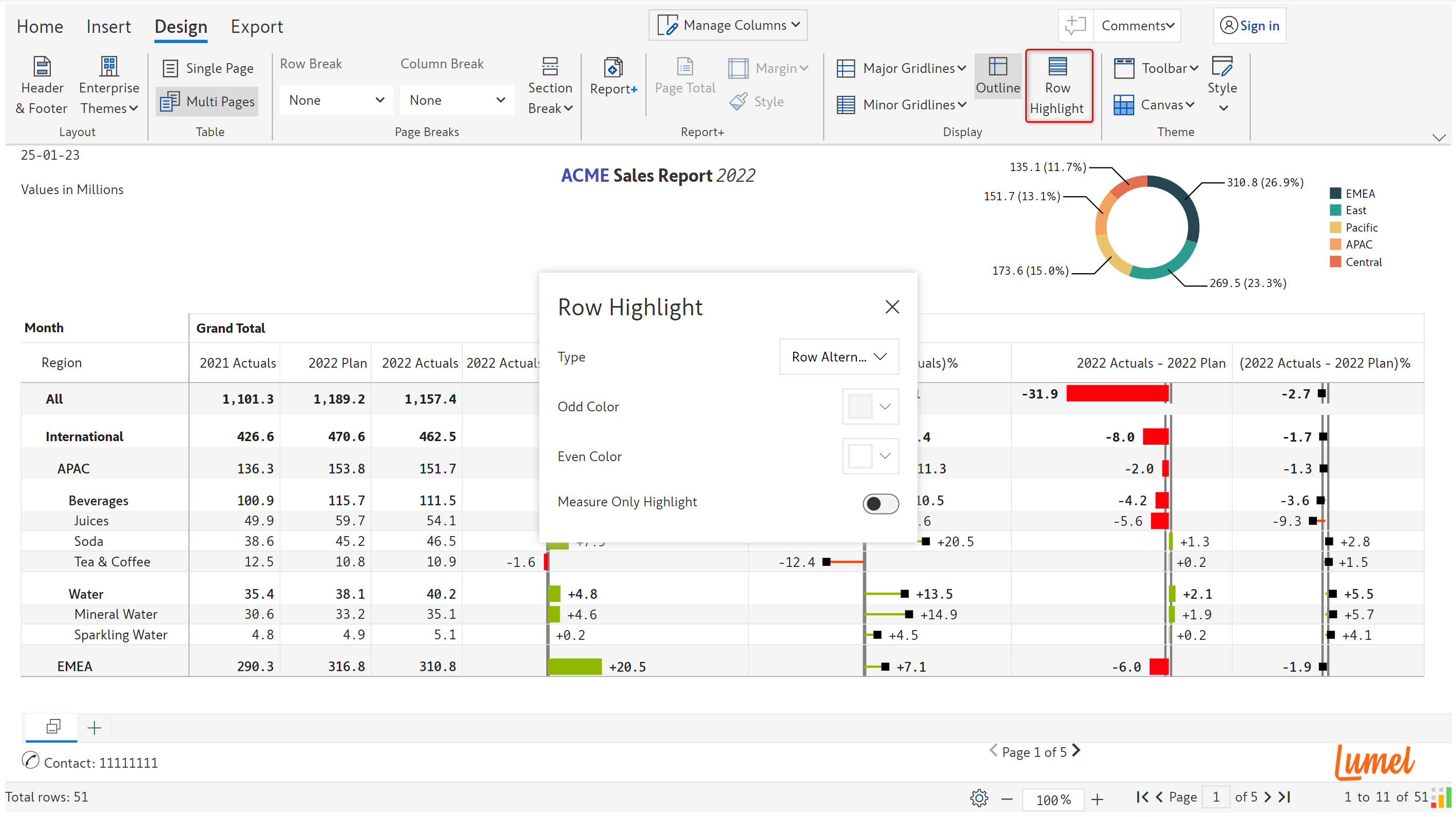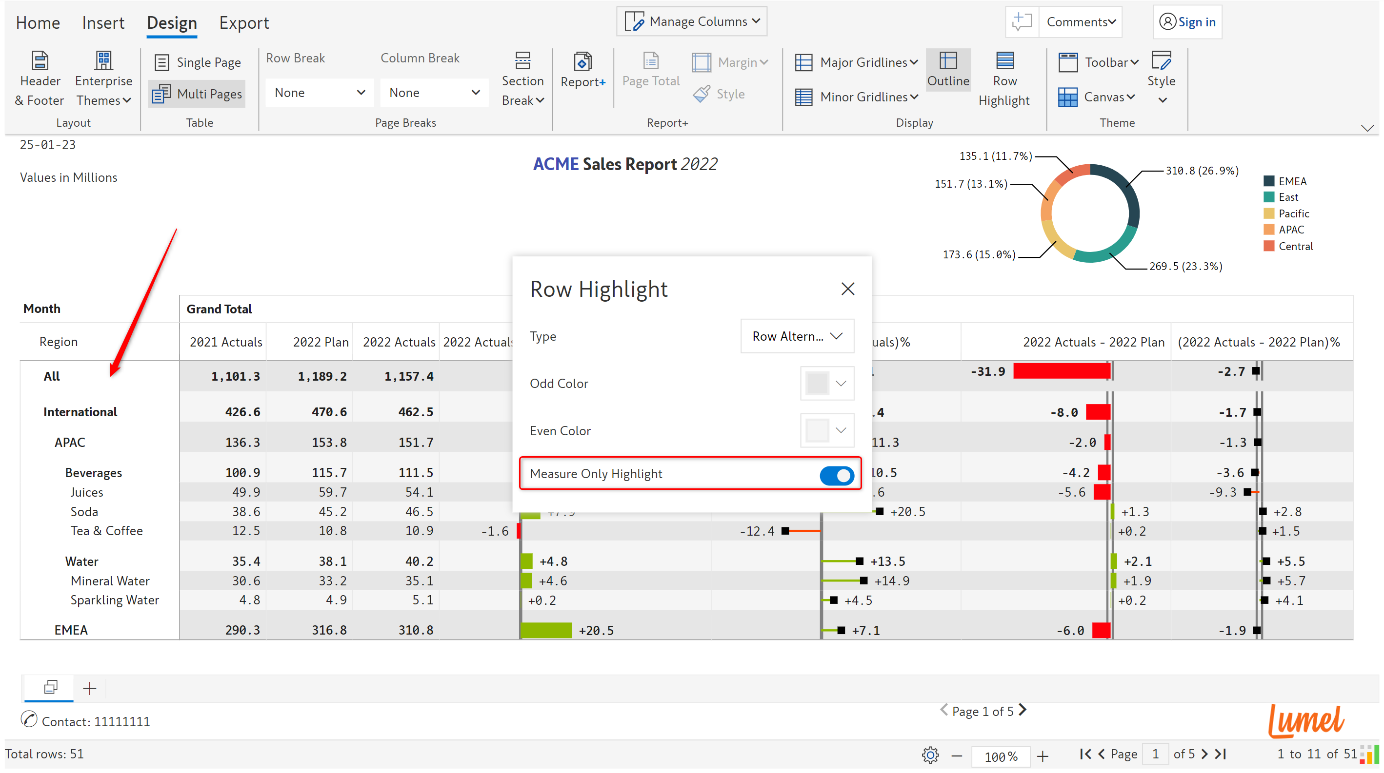 Using the ‘Measure only highlight’ option, you can apply banded rows only to the measures to recreate some of the popular Excel table layouts.&#x20;