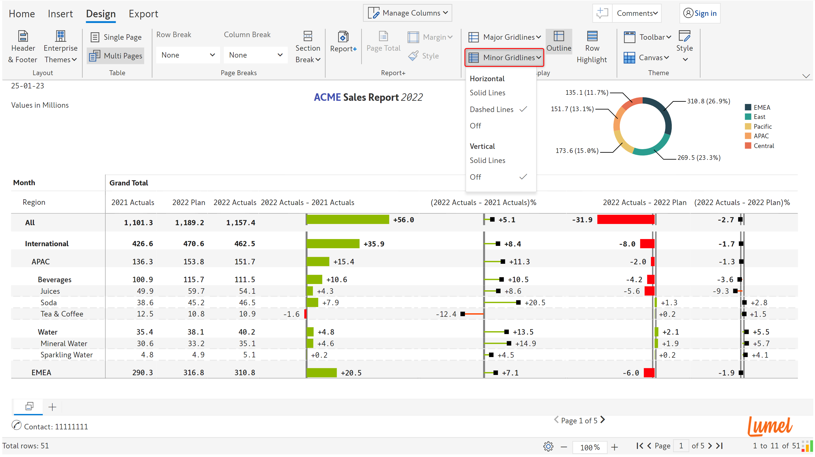 Horizontal and vertical minor gridlines are applied to the child rows and all columns in the report. The available options are shown in the below image.