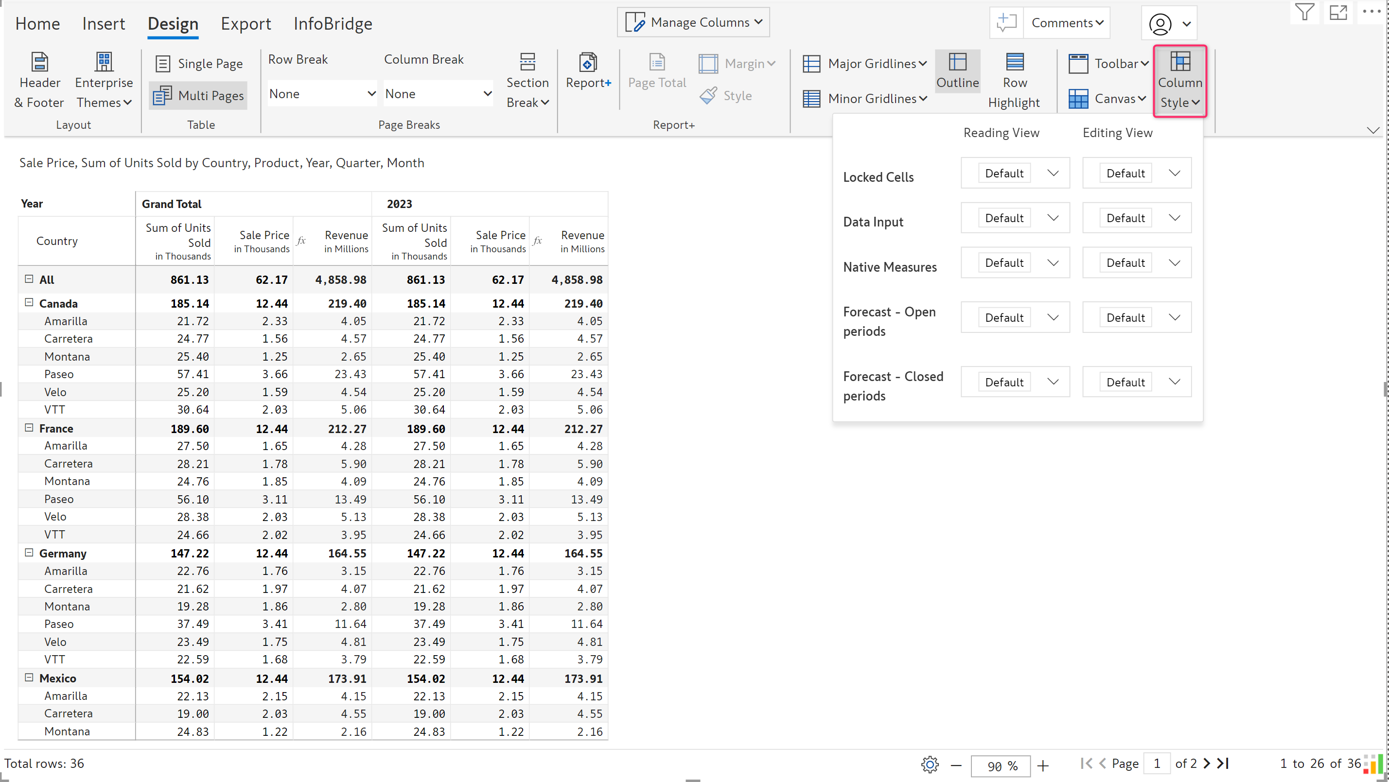 You can choose different cell and text formatting options for the locked cells, data input columns, native measures, and forecast columns - open and closed periods. This enables viewers to identify and differentiate them quickly.