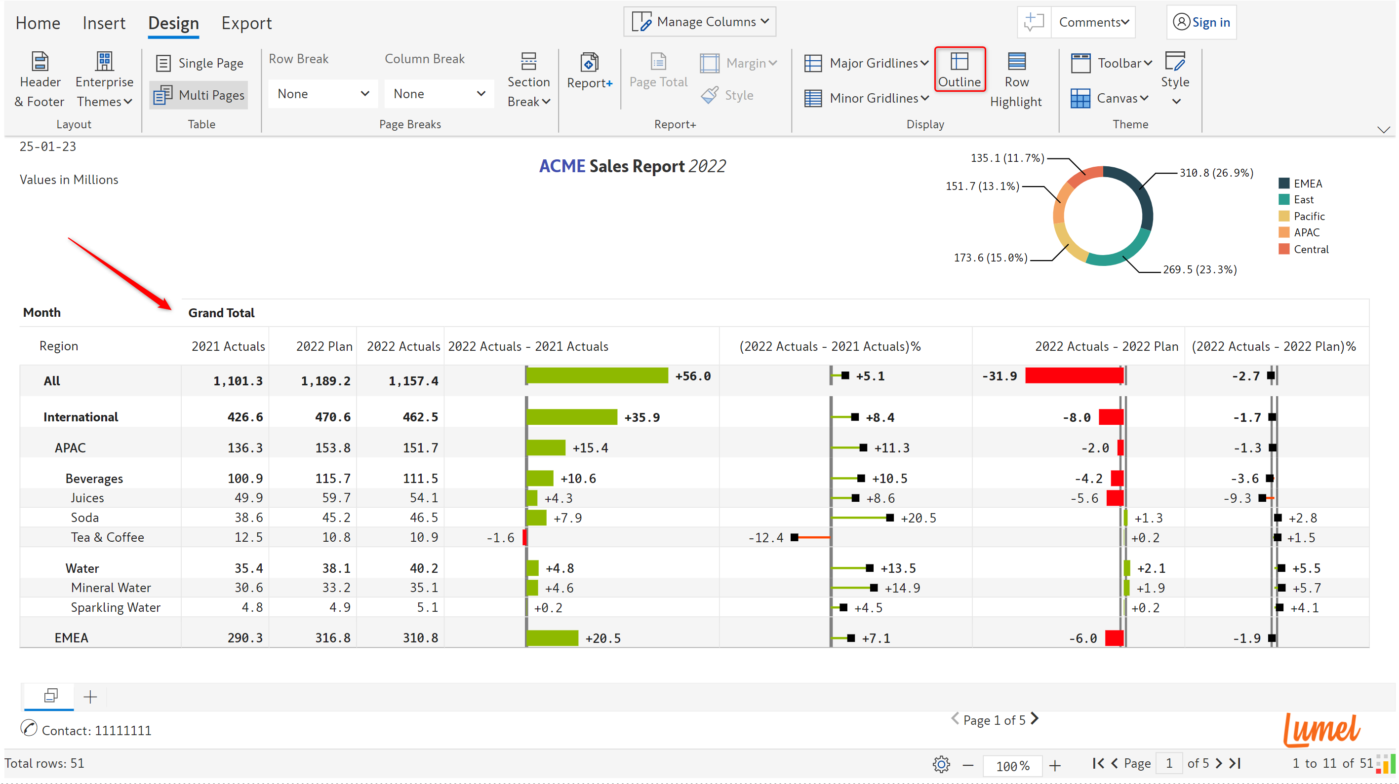 To make the data in the table easier to read, you can display gridlines. You can also apply a table outline and row/measure highlights. By default, gray lines are used, but they can be customized in the ['Display' settings](https://docs.inforiver.com/premium-table/display-settings/general-settings).