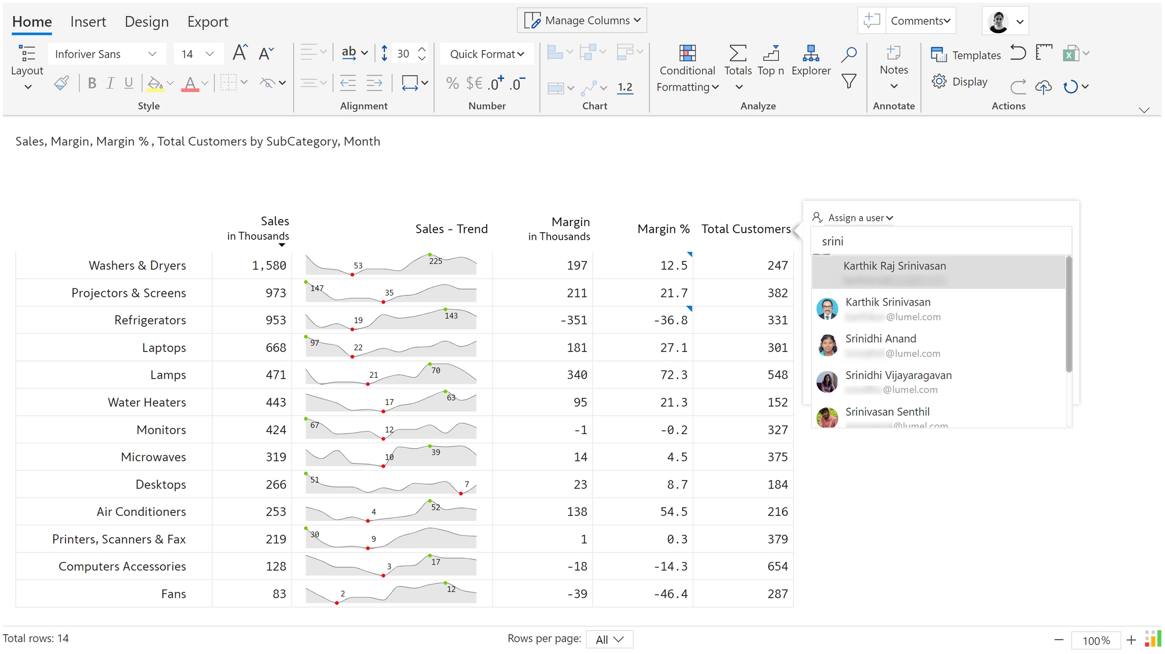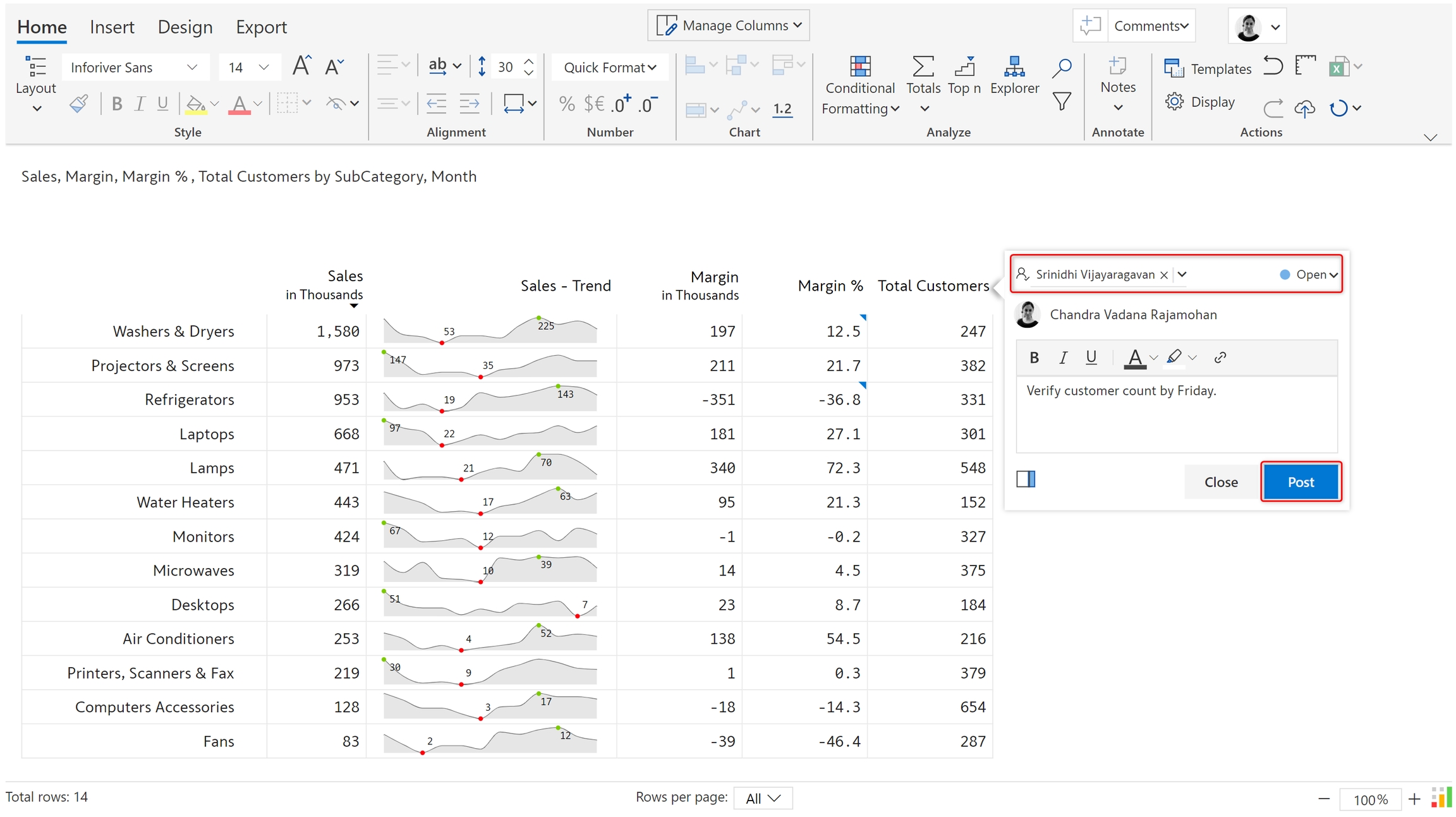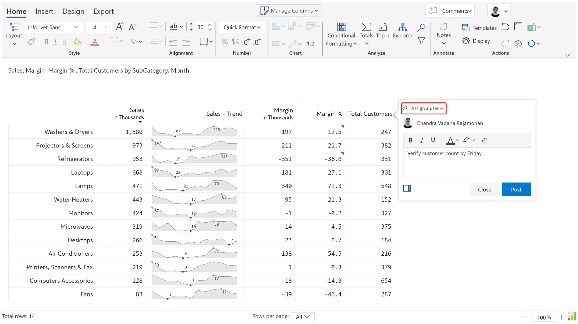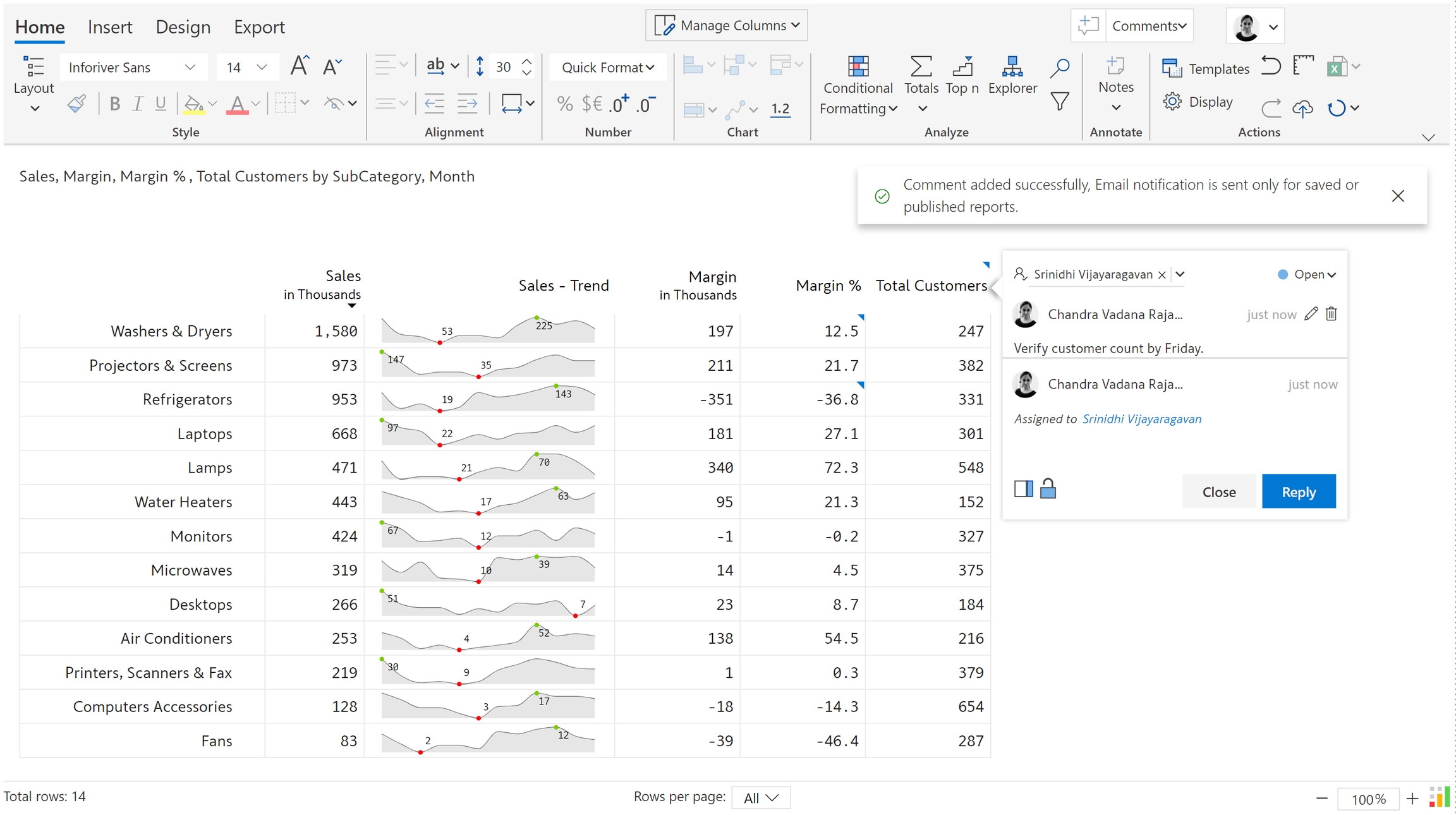 e) By clicking on the arrow highlighted, you can expand/collapse the task status and assignee columns. Based on the selection in the comments editor, these columns get populated automatically.