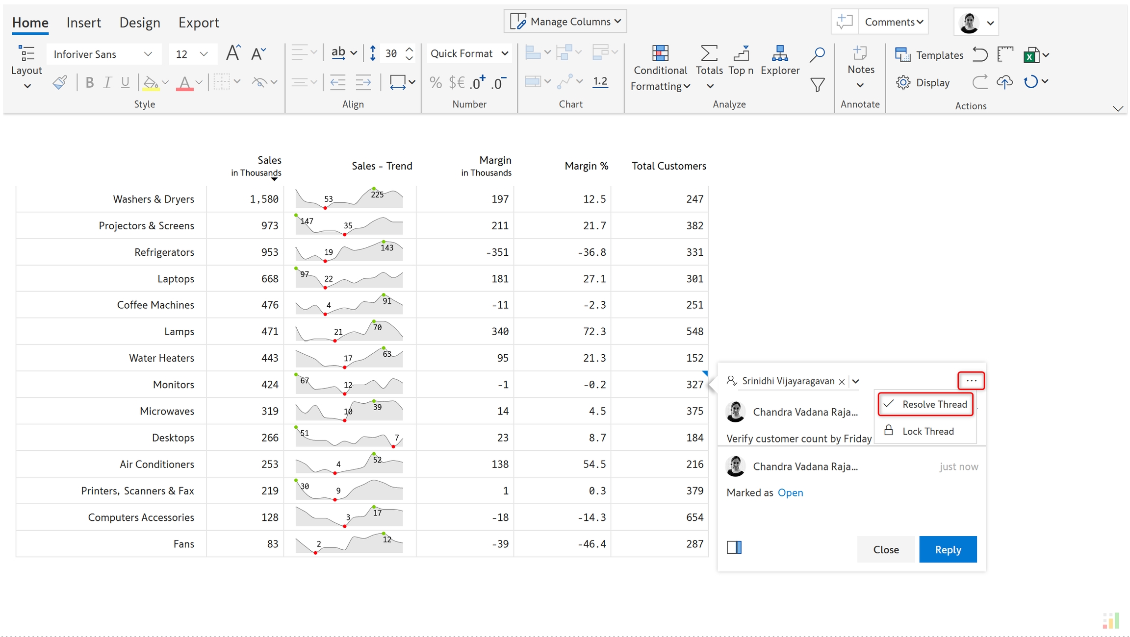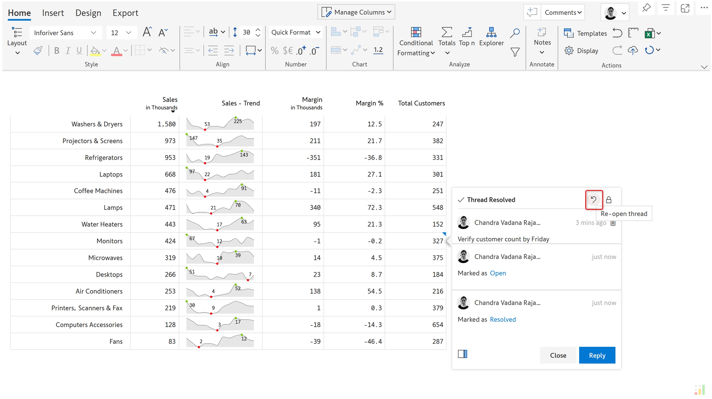 c) Resolved tasks can be reopened if required by clicking on the 'Undo' icon. Alternatively, replying to any resolved thread will automatically make it open again.