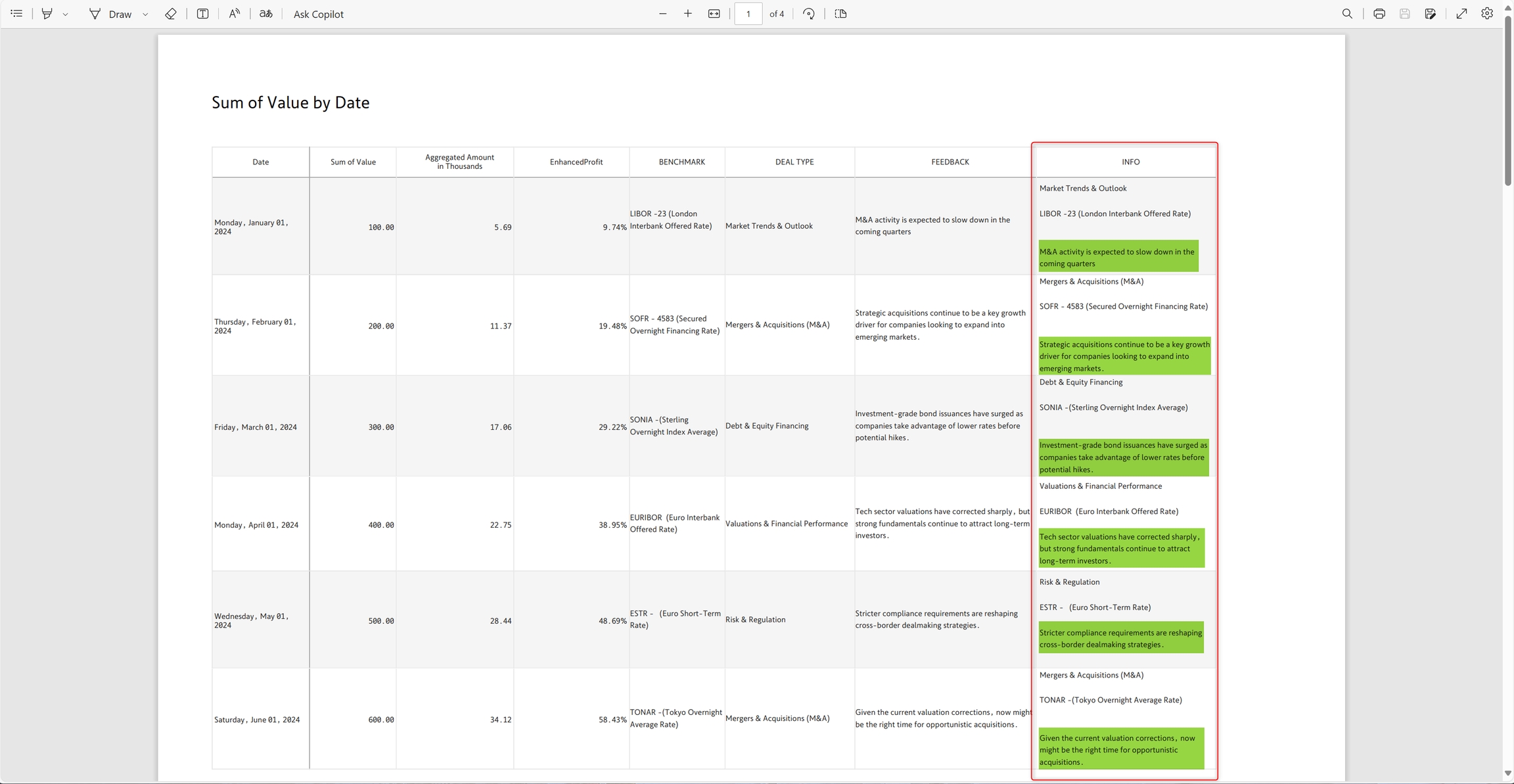 Notice how the data bars in the Margin measure and the flag icons in the Projections measure haven't been exported to the PDF file since we deselected those 2 rules.