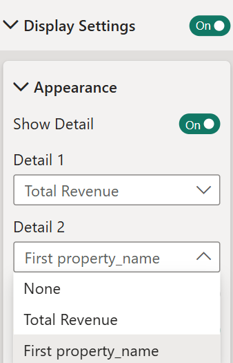 A toggle switch is provided to enable or disable the visibility of details in the visual. When enabled, users can configure how additional data fields appear.