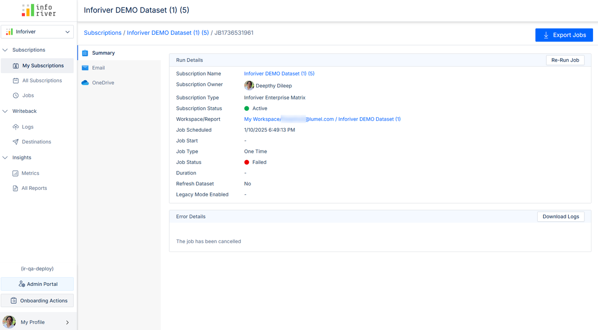 This tab displays all the jobs for the selected subscription.