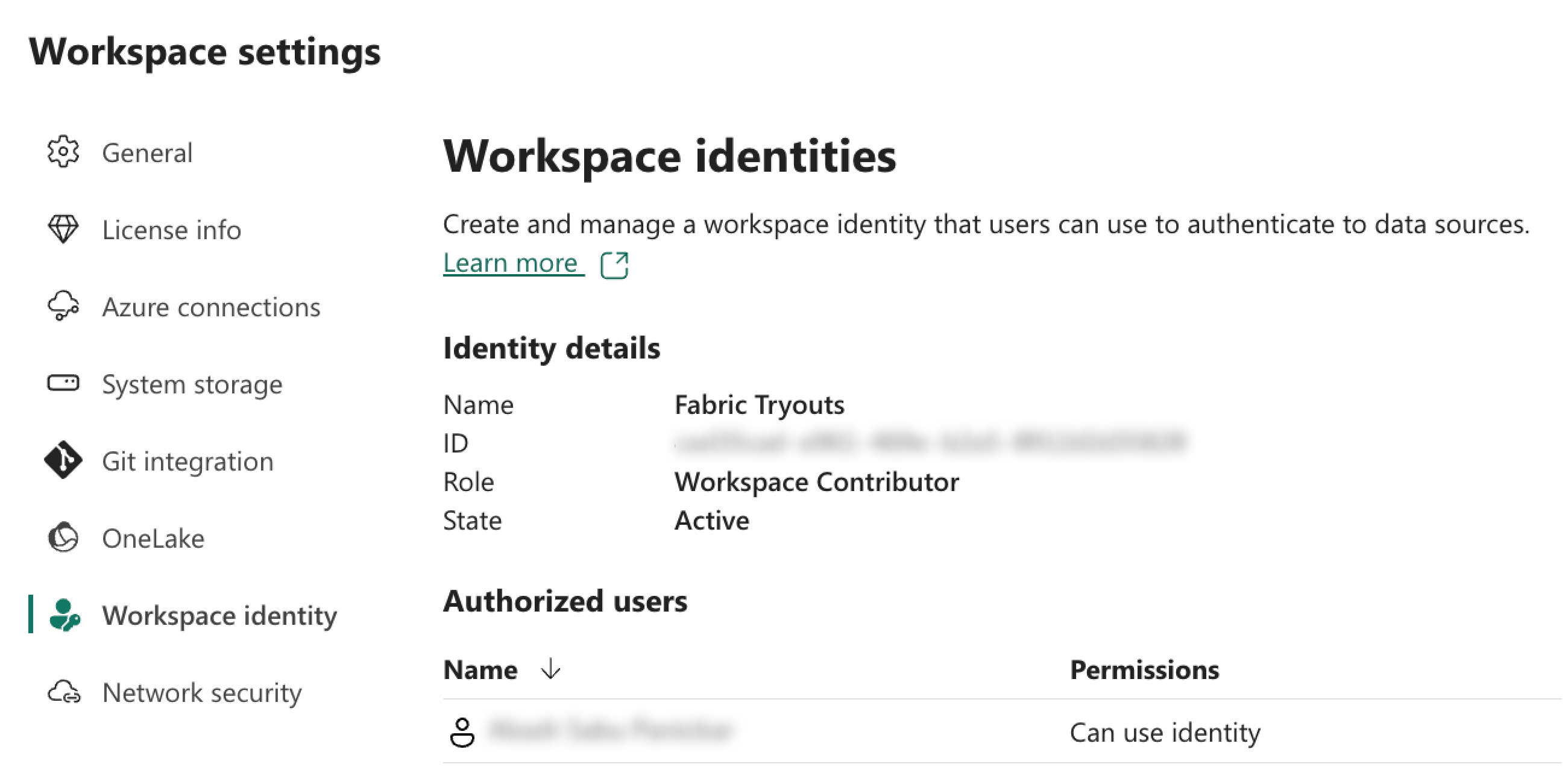 1\. Create a **"Workspace Identity"** and then add the **"Service Principal"** as an **"Authorized User"**.