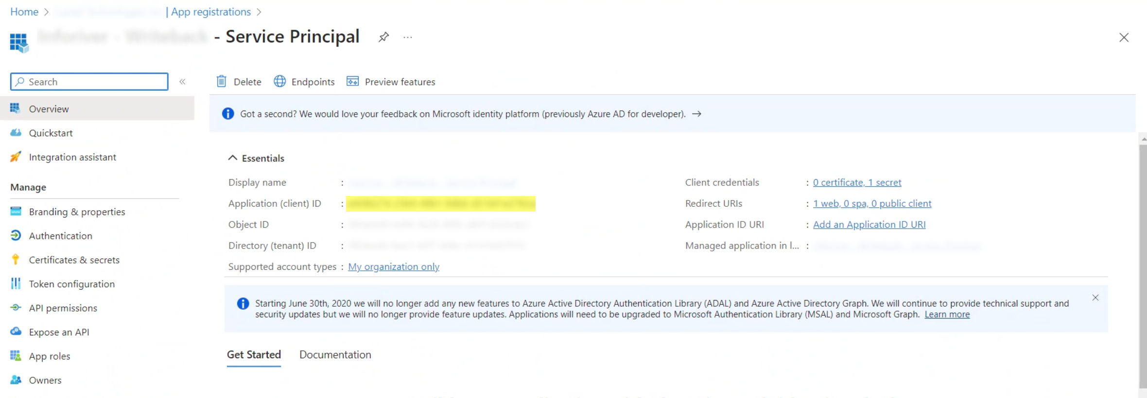 #### Fetching the Service Principal Client ID and Service Principal Client Secret