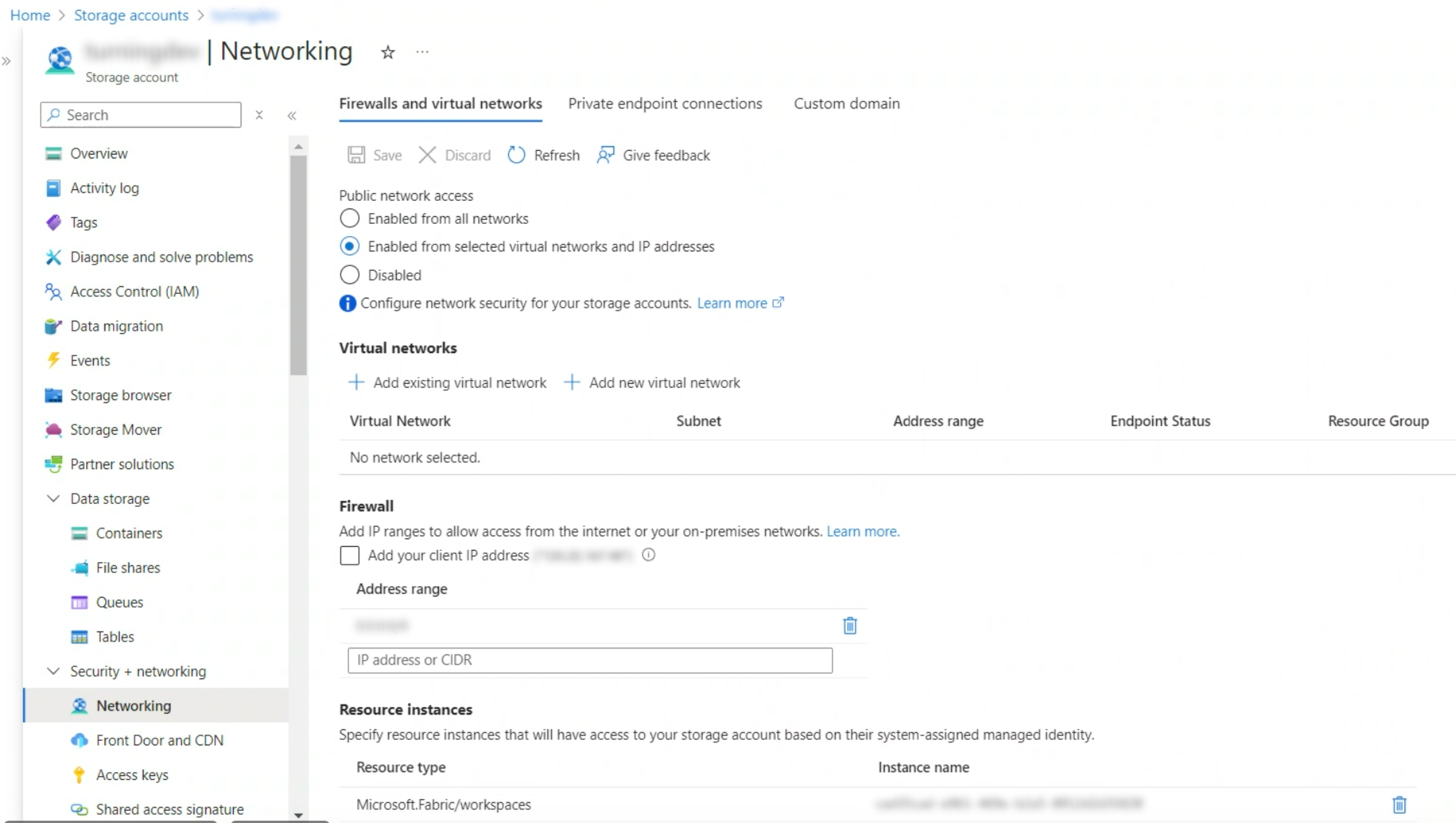 2\. Ensure that the **"Workspace Identity"** is whitelisted in the **"Resource Instance Rules"** of th&#x65;**"Storage Account"**.