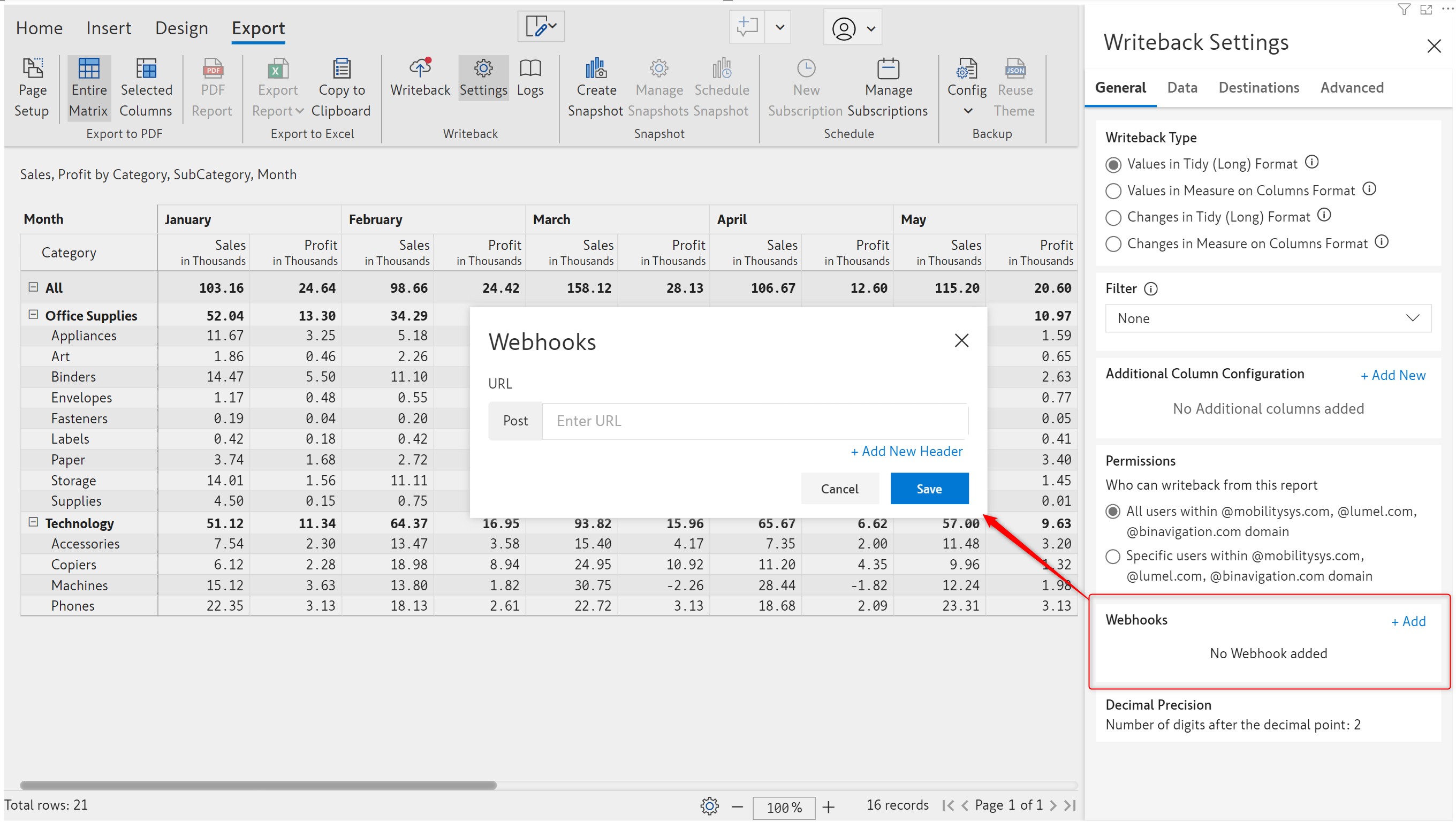 2. **Changing dimensions of report table:** Adding new dimension categories will display a warning to the user seeking permission to drop and writeback.&#x20;