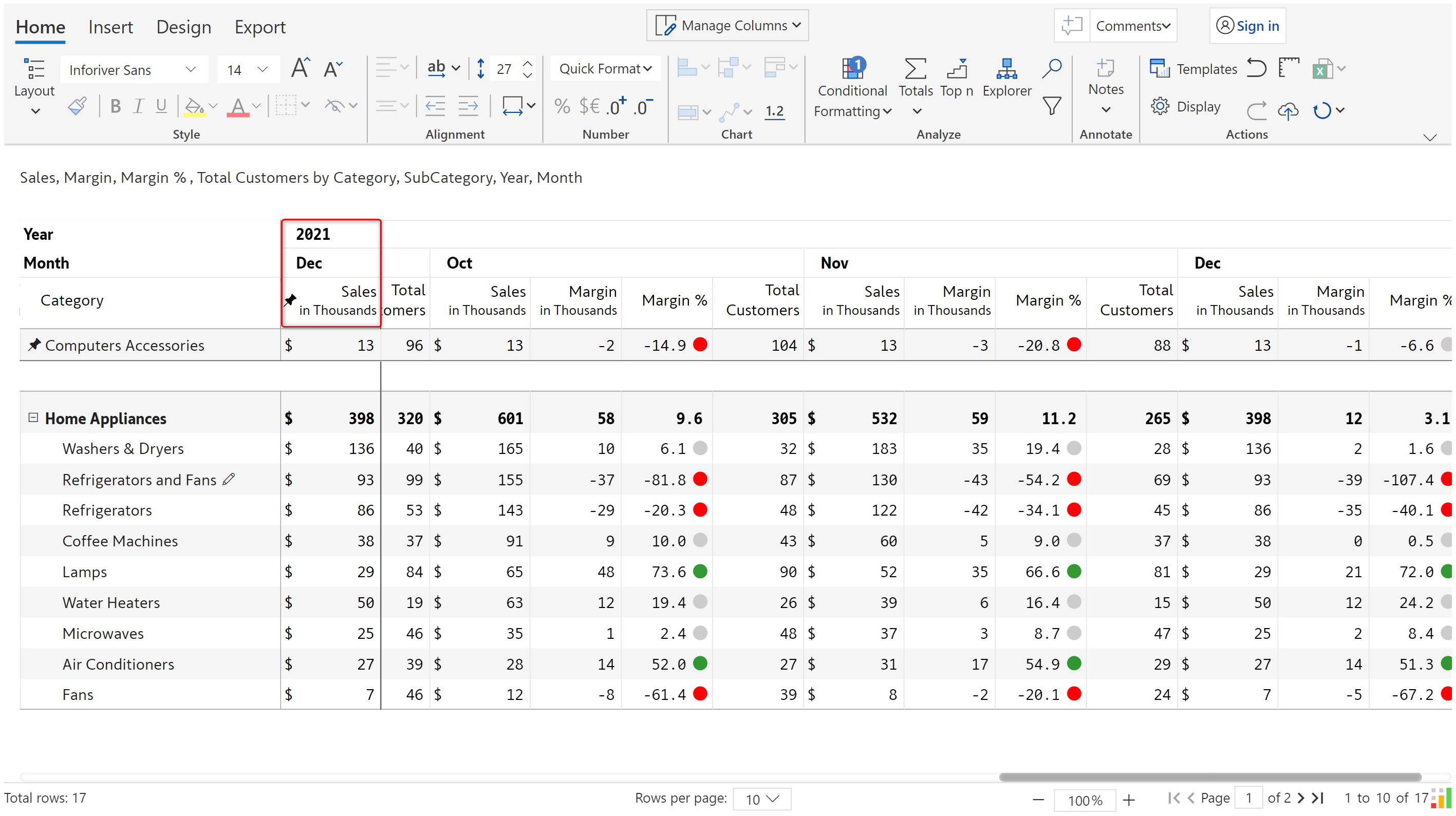 In this example, we have Computer accessories on the second page of the report. But this is an important category that is being tracked so we want it to be easily visible on the report.&#x20;
