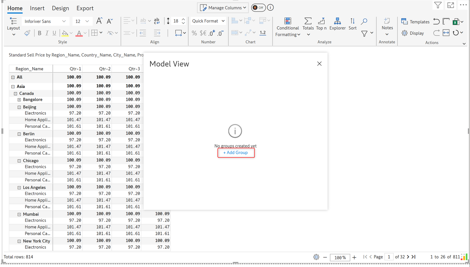 In the Model view pop-up, click on the Add Group options.