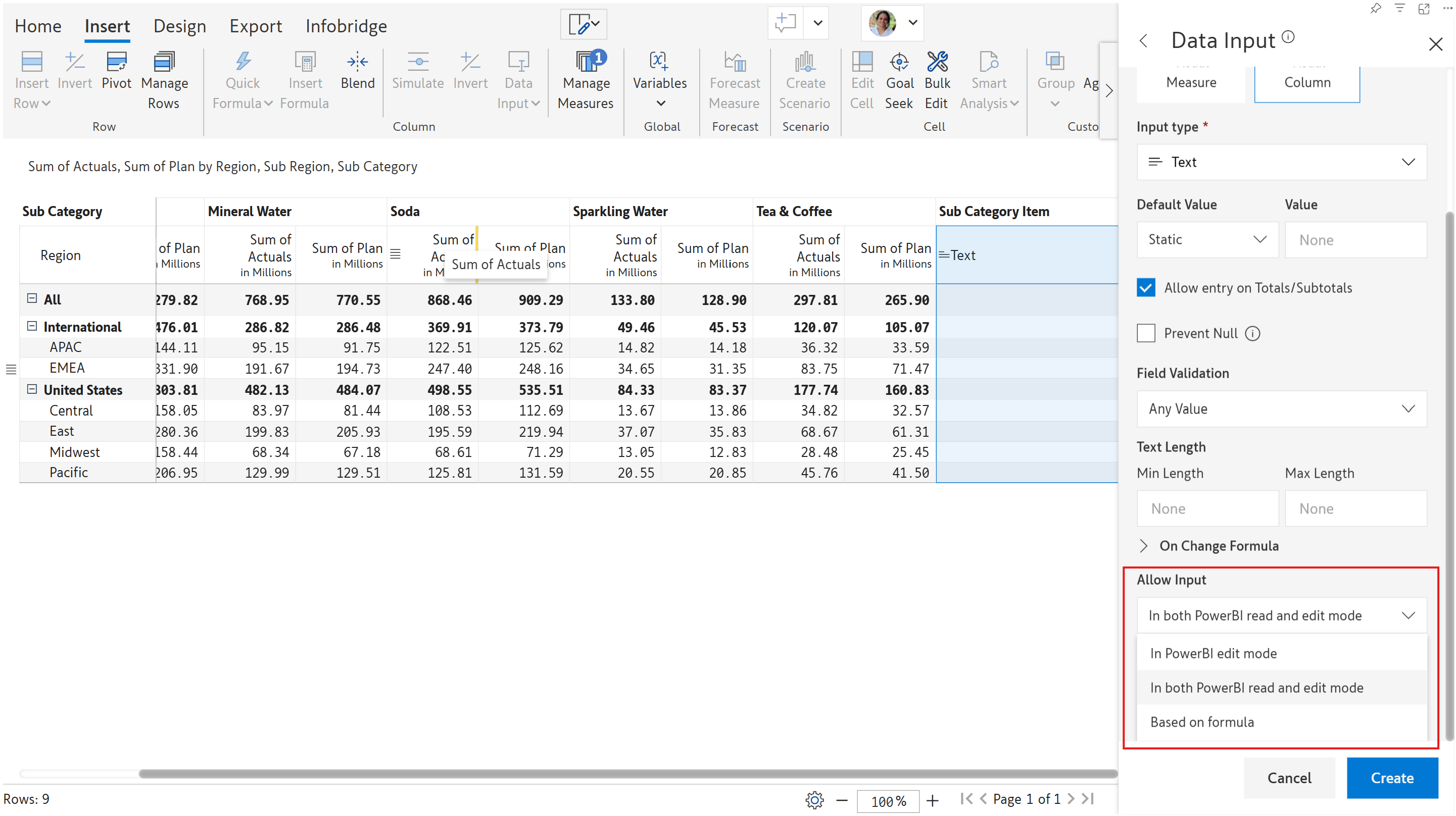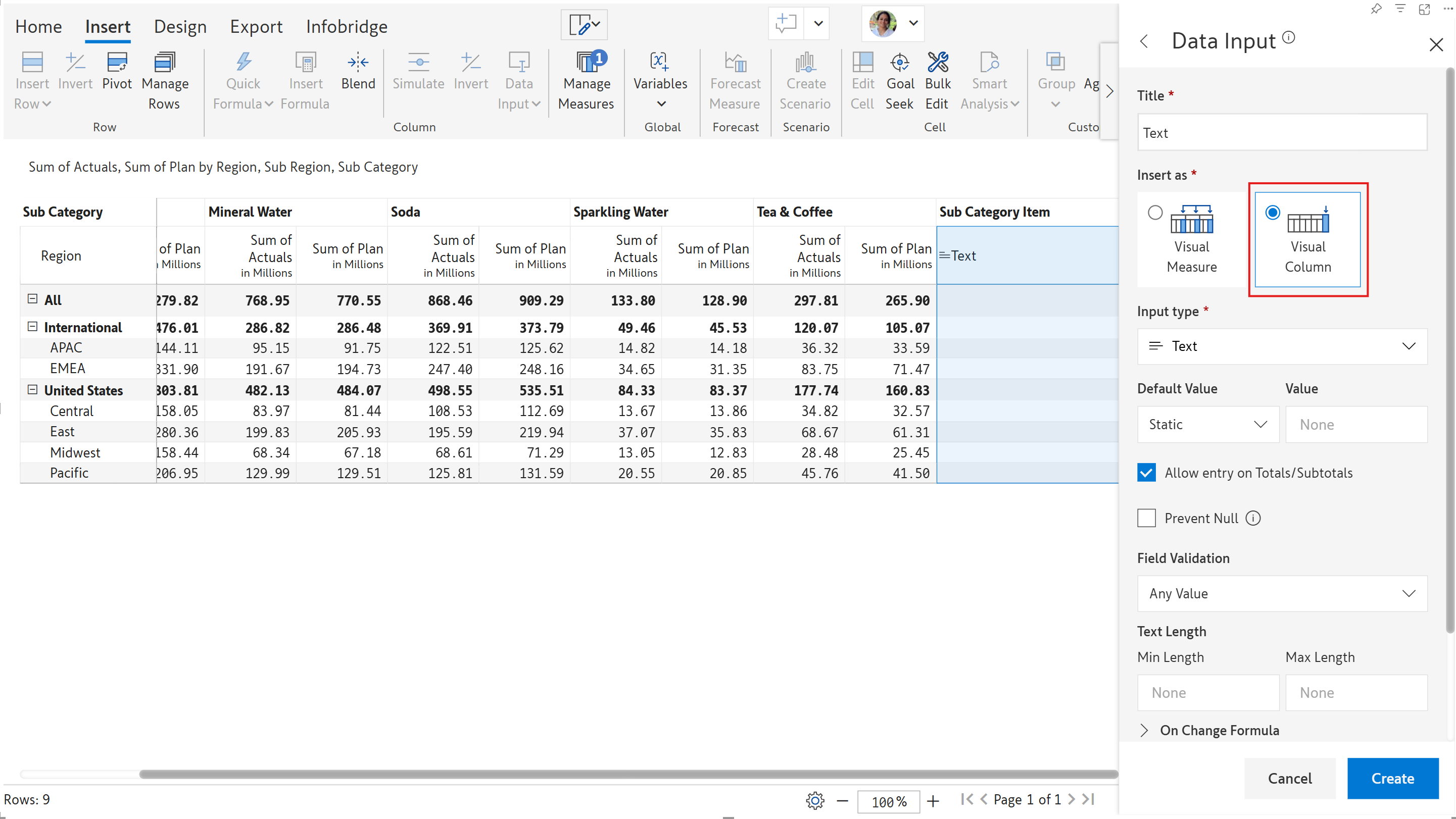 Data input columns can be inserted as a measure or a column.&#x20;