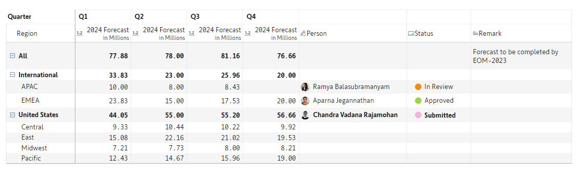 Just like we entered the values, other users in the organization also can enter the values for their respective regions.