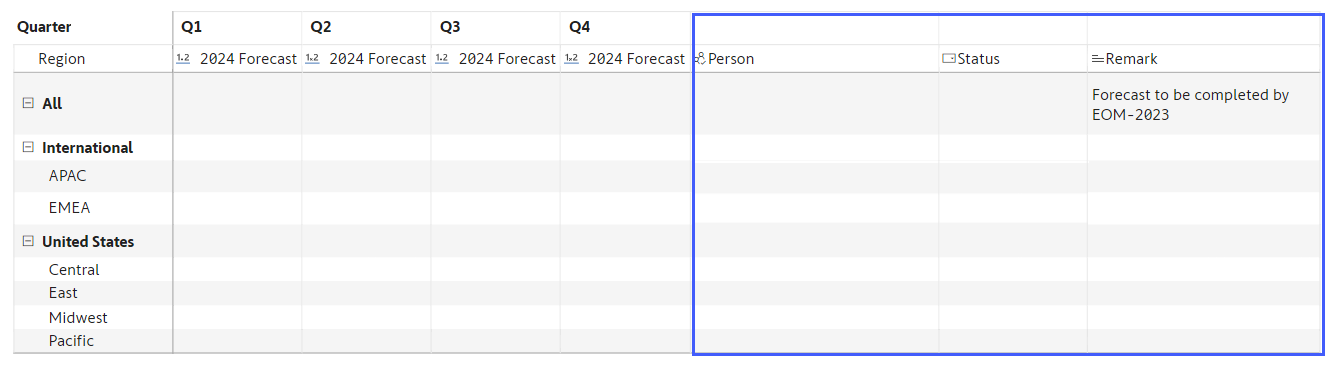 Similarly, you can go ahead by filling out values for the other granular regions. Assign the people & status fields to each row.